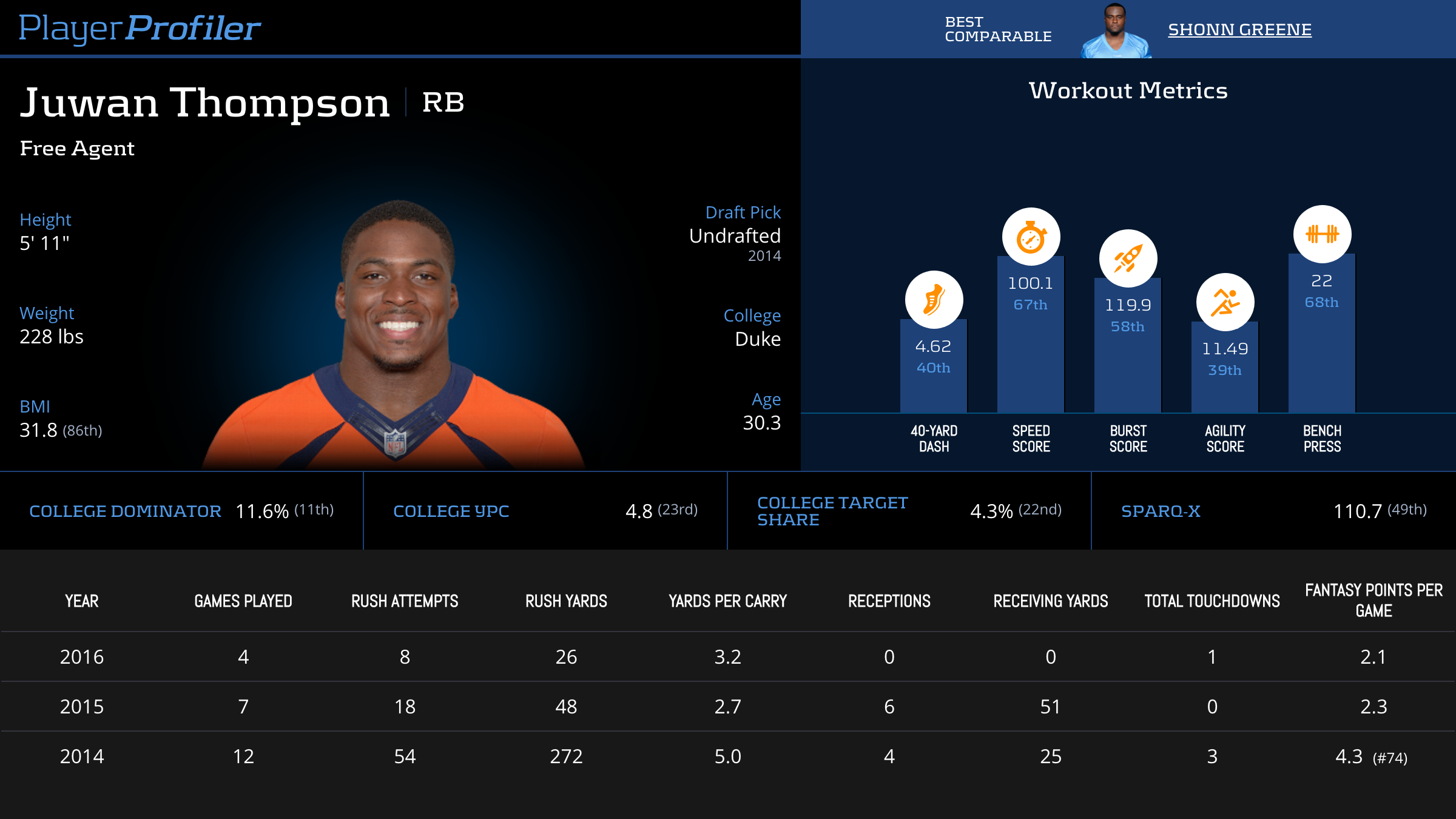 | 13 | JAC | 13.5% | 2 | -- | 0 tgts | -- | 5 | -- | 0.5 (##71) |