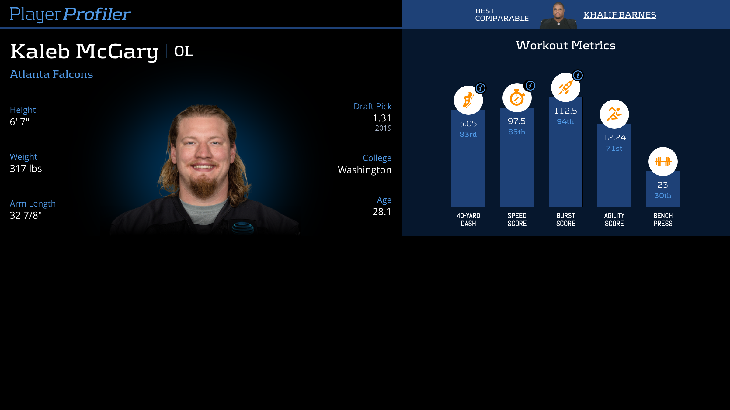 Download all Kaleb McGary advanced stats and metrics with Data Analysis.
