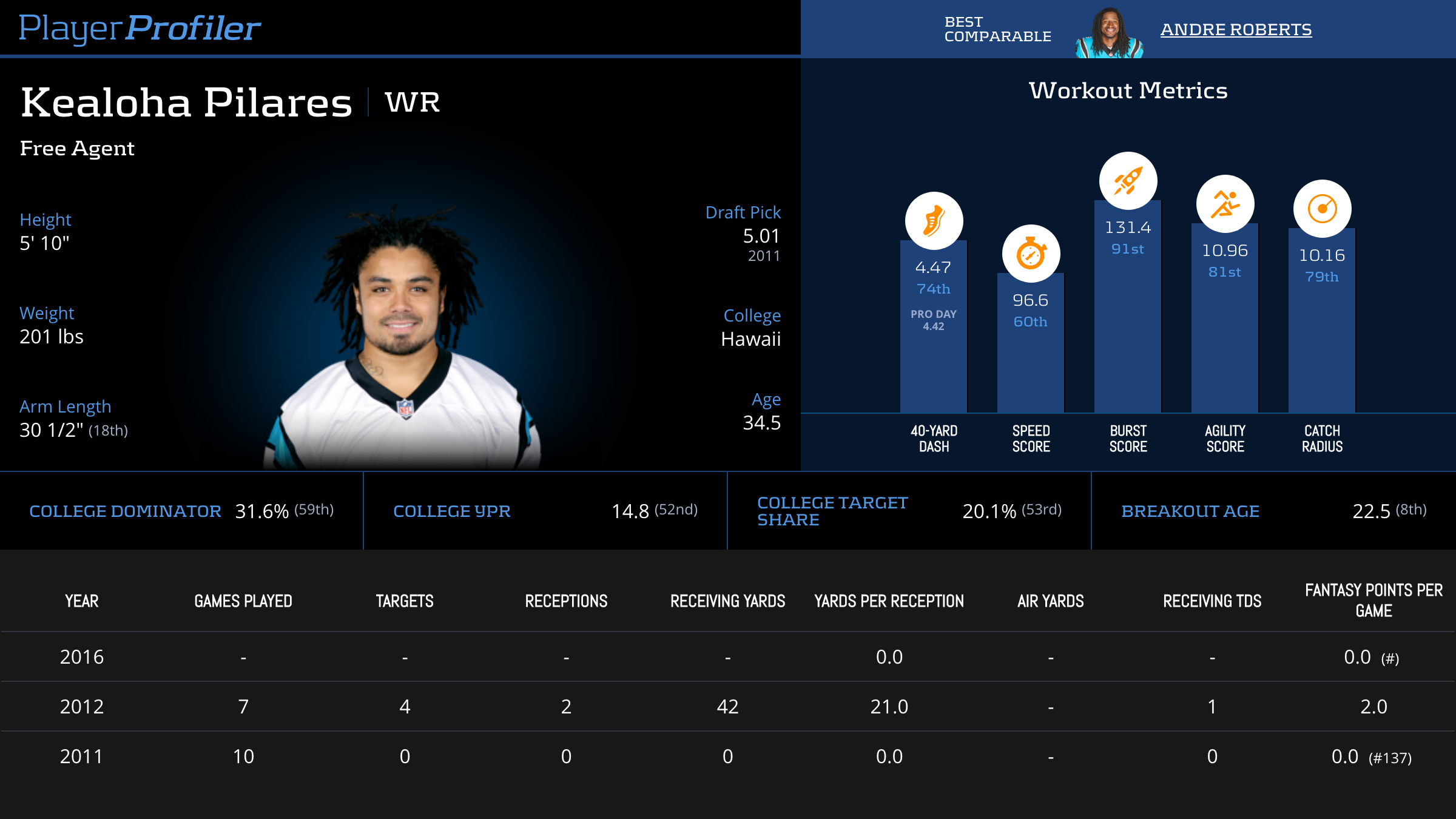 | Year Year | Games Games | Receptions Recs | Receiving Yards Rec Yds | Target Share Tgt Share | Catch Rate Catch Rate | Receiving Touchdowns Rec TDs | Special Teams Yards Special Teams | Age Age | School School |