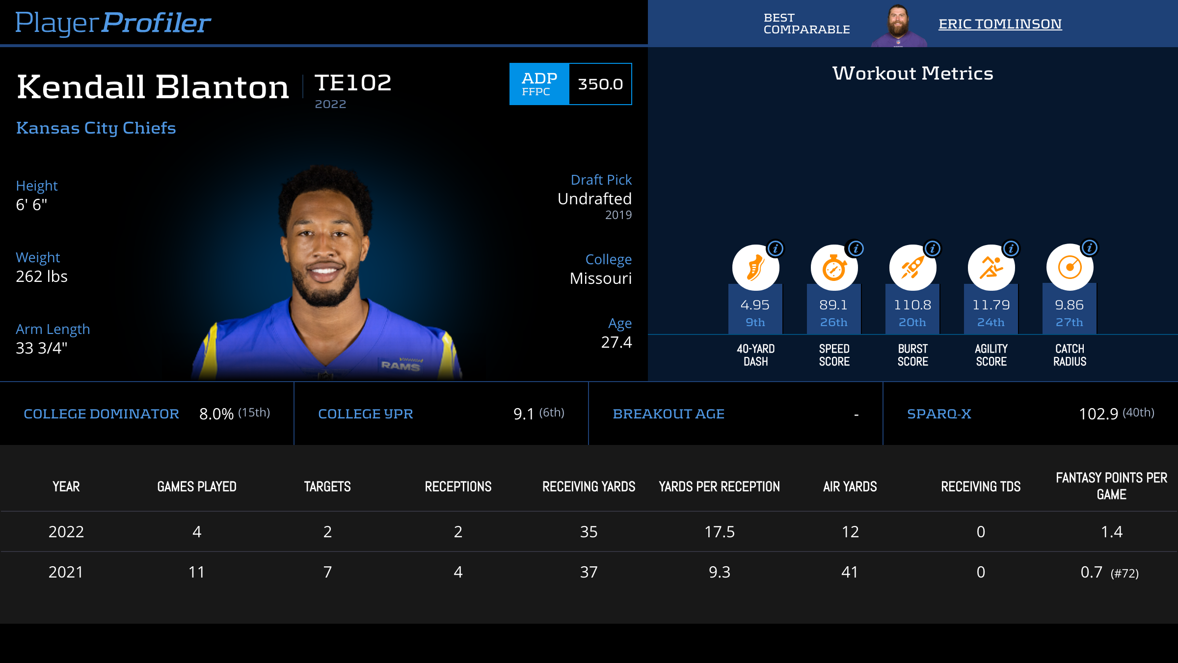 | 4 | SF | 11.0% | 5 (9.1% rate) | 1 | 1 | 7 (6 air) | 1.7 (#51) |