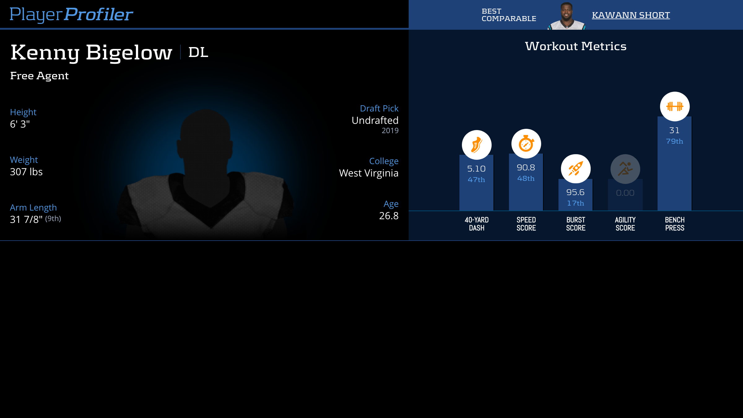 Download all Kenny Bigelow advanced stats and metrics with Data Analysis.