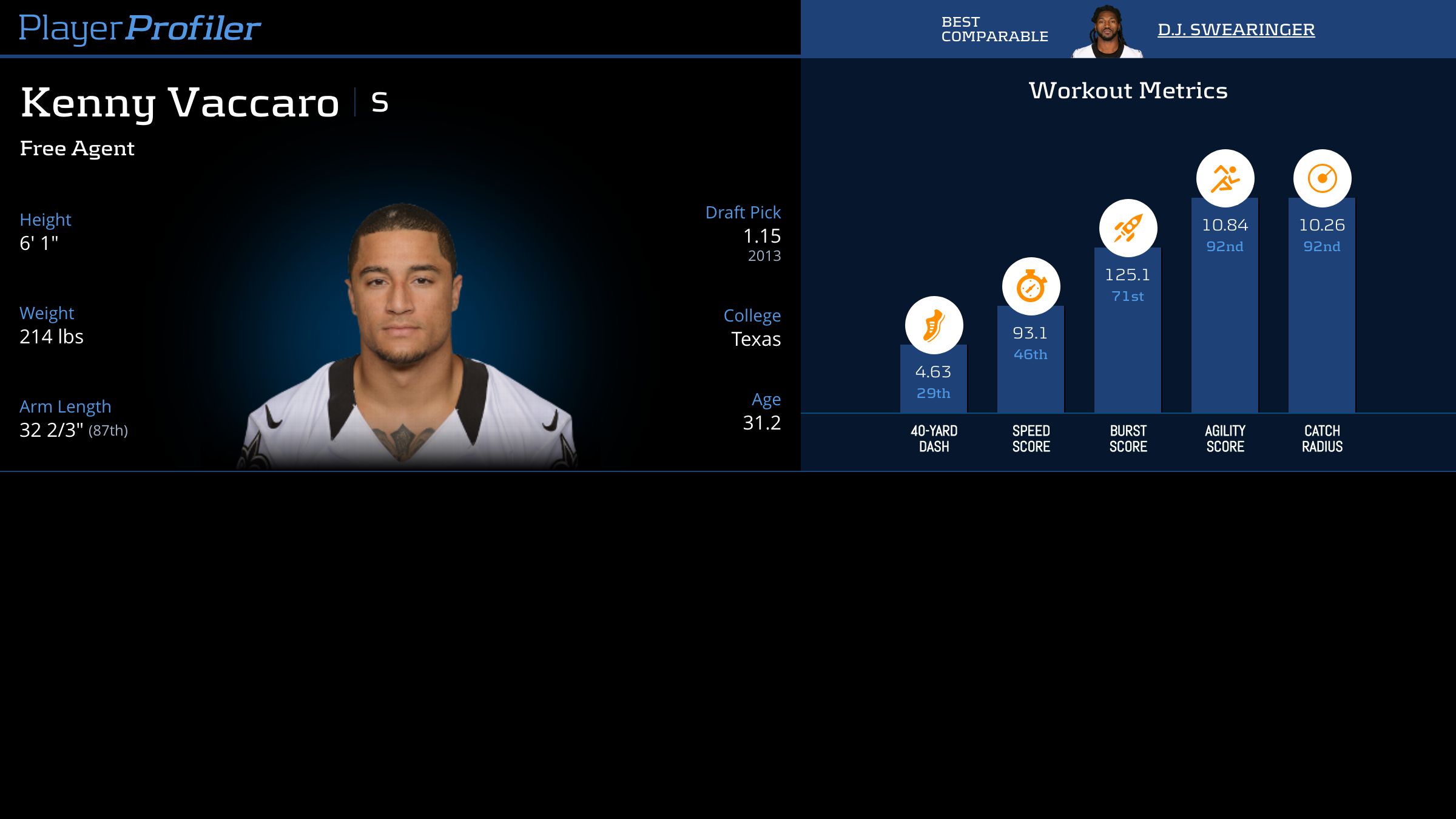 Value Over Stream: Valuation scheme calculates a player's fantasy pts/game over the average waiver wire replacement in standard fantasy league formats during either the current season (or previous year during the offseason) and adjusts for positional bust rates. VOS rank in parenthesis spans all positions, enabling player comparisons across QB's, RB's, WR's, and TE's.