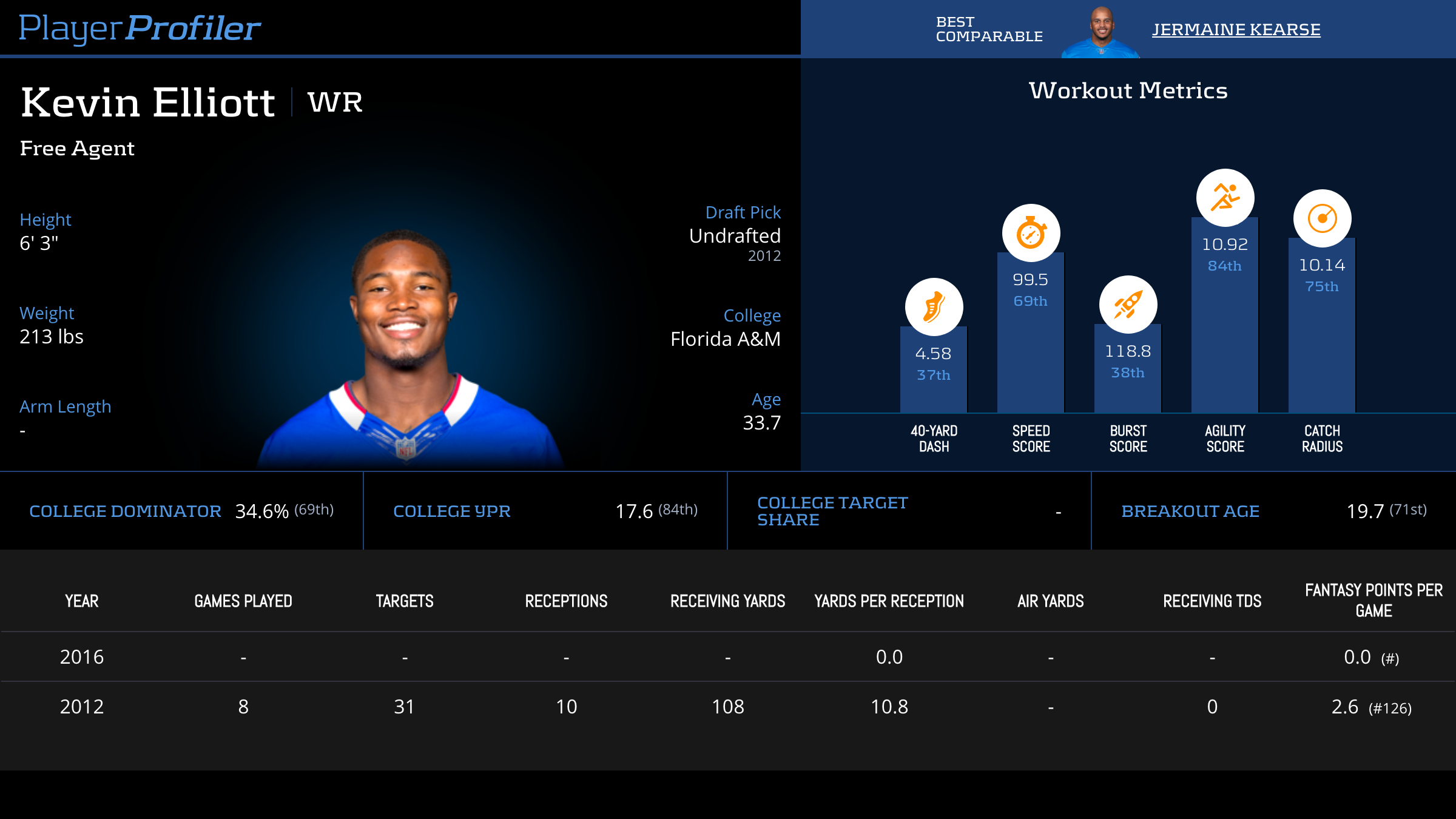 Year Games Tgts Rec Rec Yds YPR Air Yds Rec TD Fantasy Pts/Game