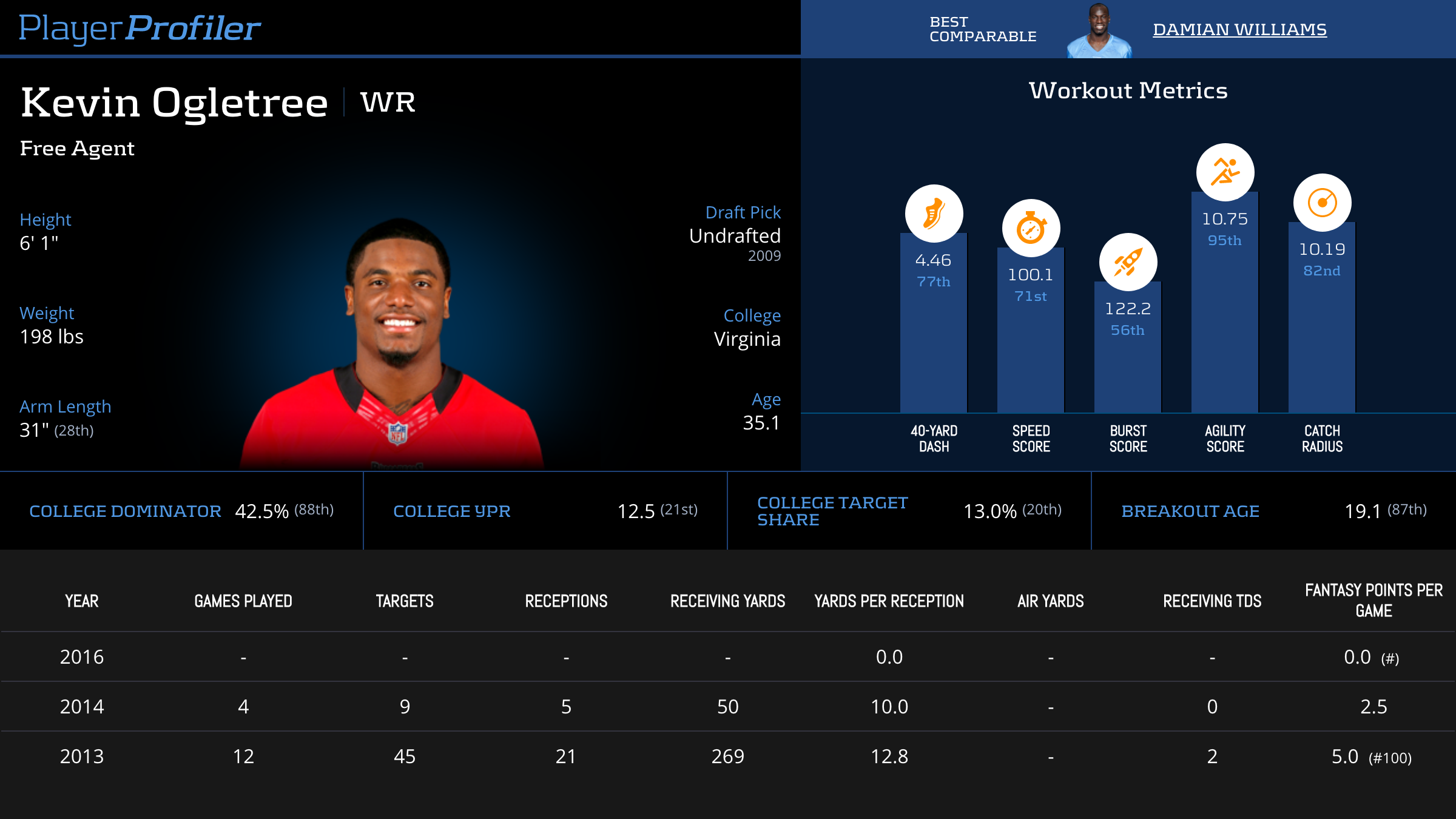 | Year Year | Games Games | Receptions Recs | Receiving Yards Rec Yds | Target Share Tgt Share | Catch Rate Catch Rate | Receiving Touchdowns Rec TDs | Special Teams Yards Special Teams | Age Age | School School |