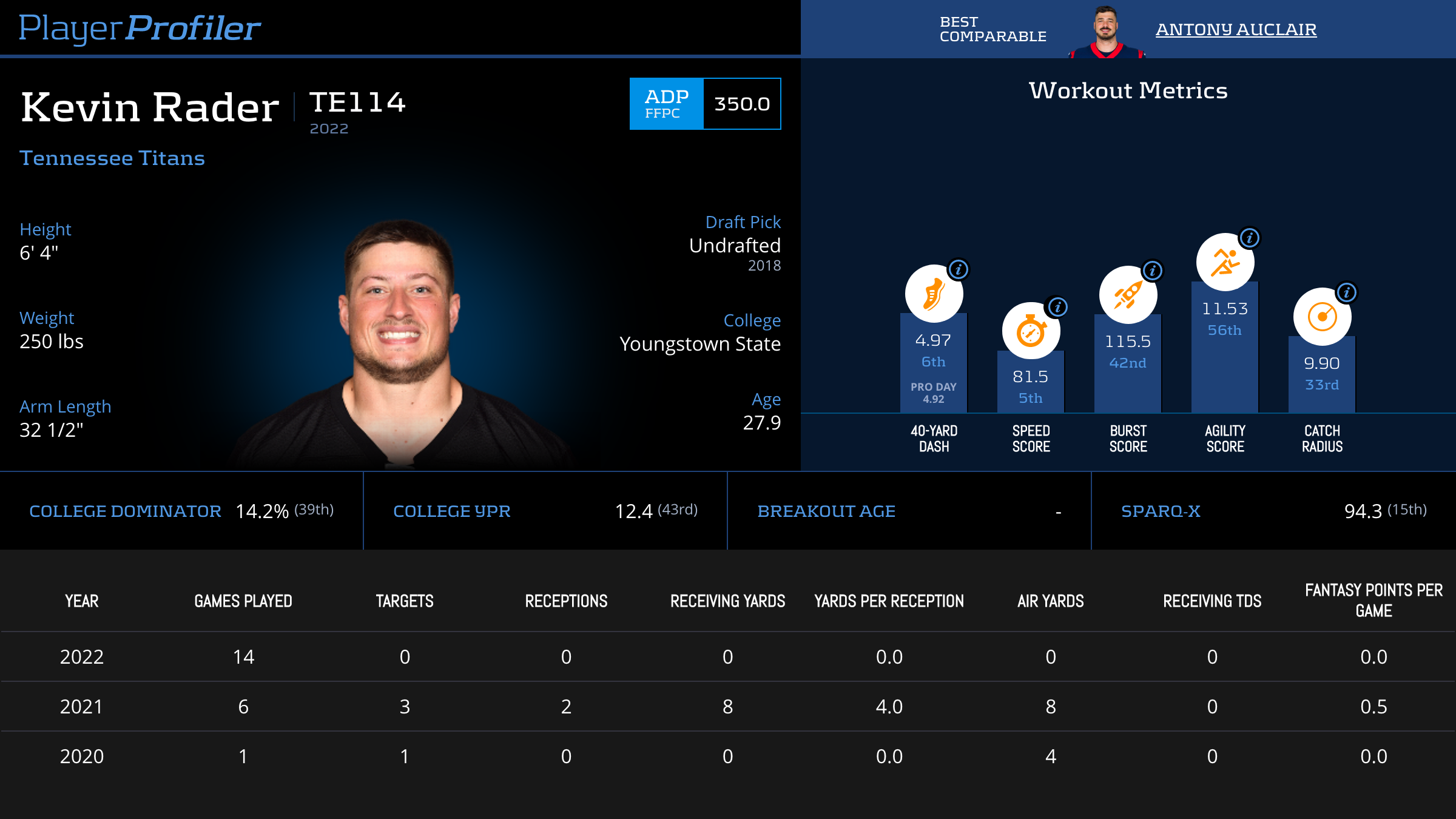 Box score statistics such as targets, yards, touchdowns, and fantasy points per target are updated the next day. Advanced stats and metrics are updated later in the week during the NFL season.