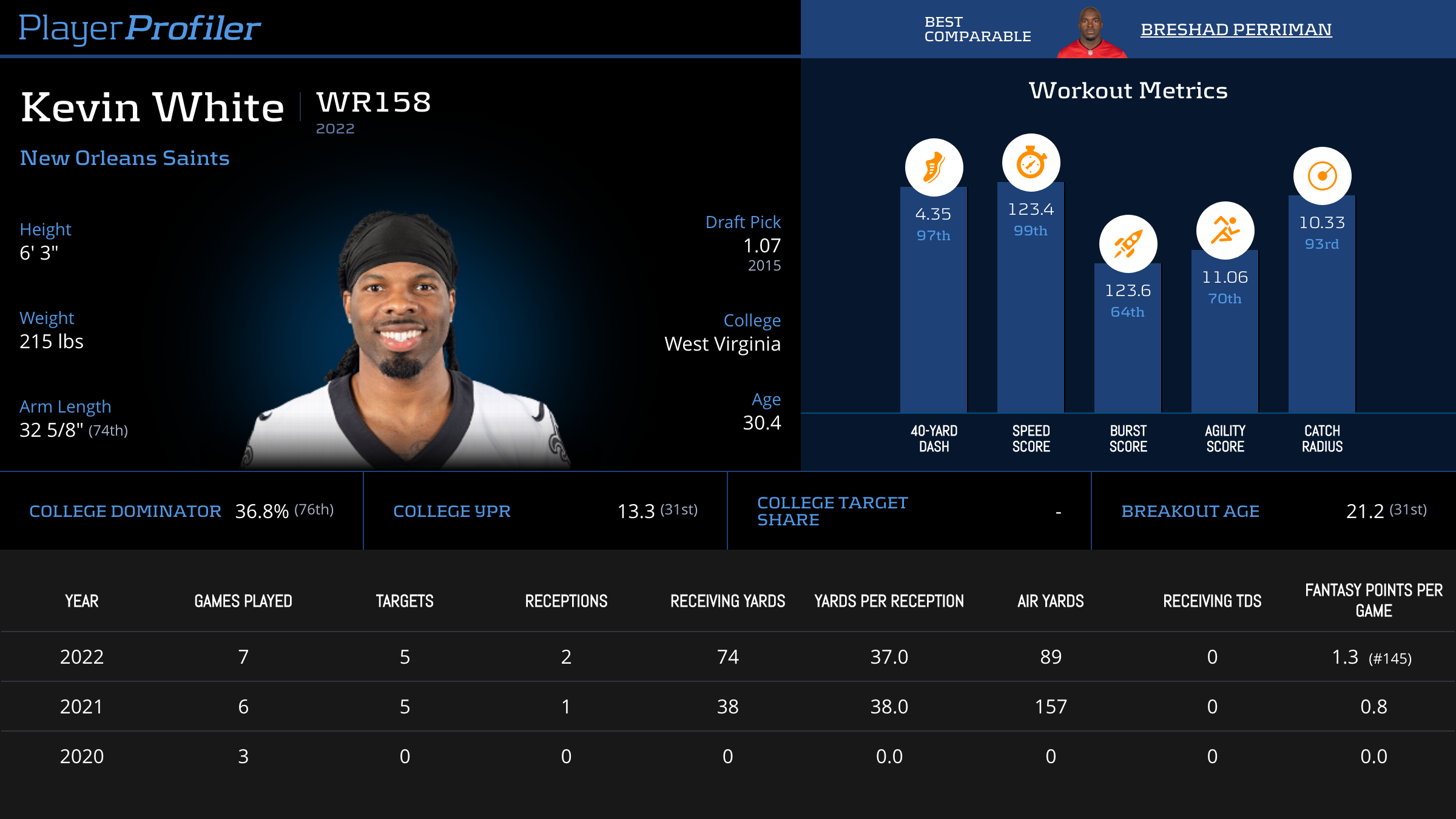 | 12 | SF | Tashaun Gipson | 37.0% | 3 (9.7% rate) | -- | -- | -- | 0.0 (#116) |