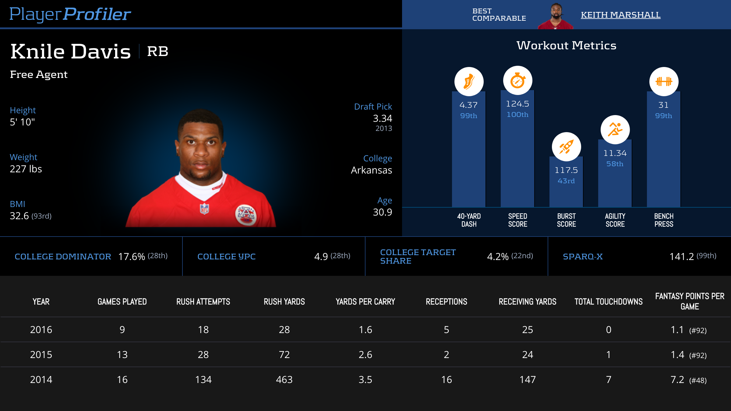 | Year Year | Games Games | Rush Attempts Rush Atts | Rushing Yards Rush Yrds | Total Touchdowns TDs | Receptions Rec | Receiving Yards Rec Yrds | Target Share Tgt Share | Age Age | School School |