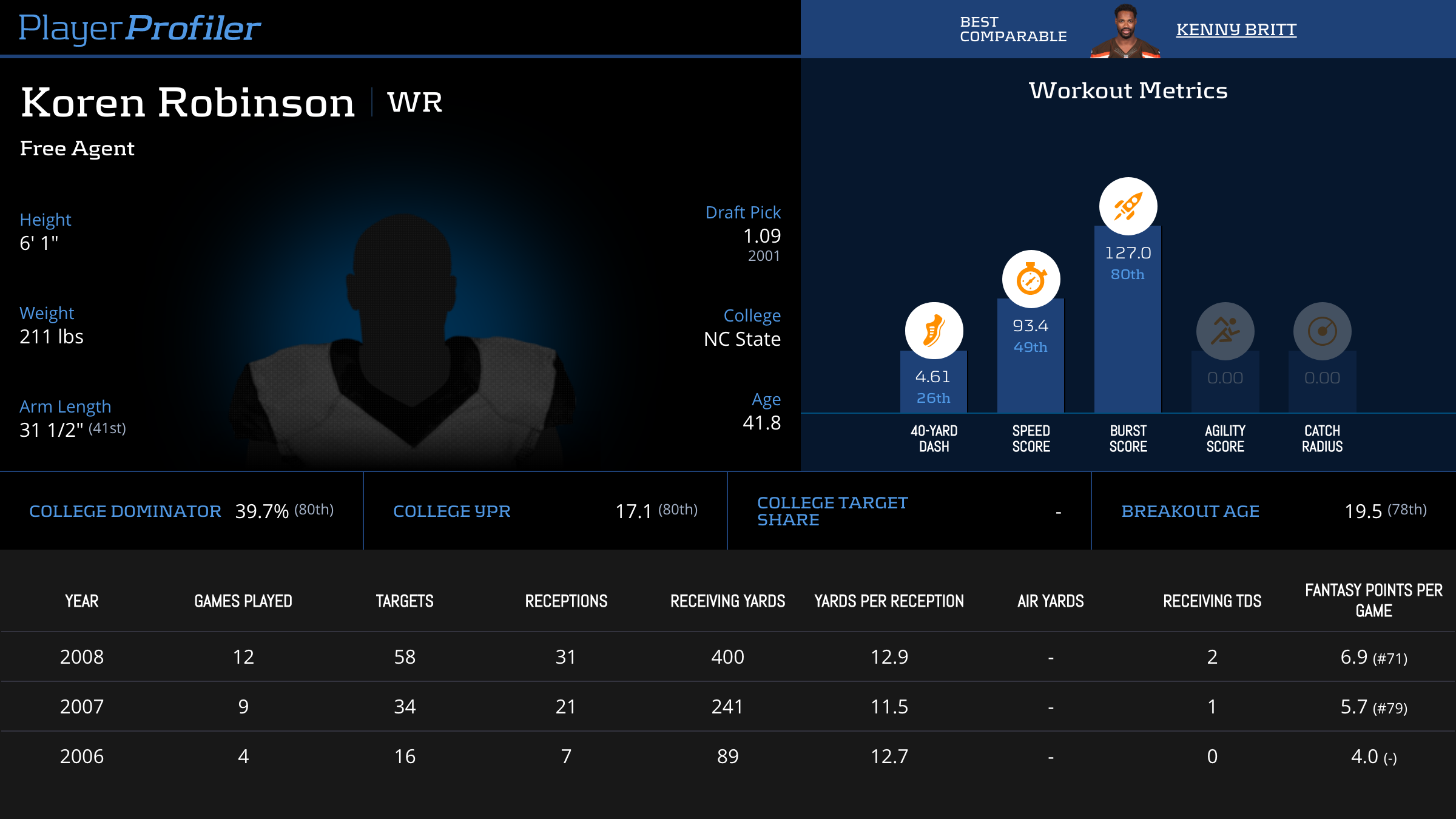 Year Games Tgts Rec Rec Yds YPR Air Yds Rec TD Fantasy Pts/Game