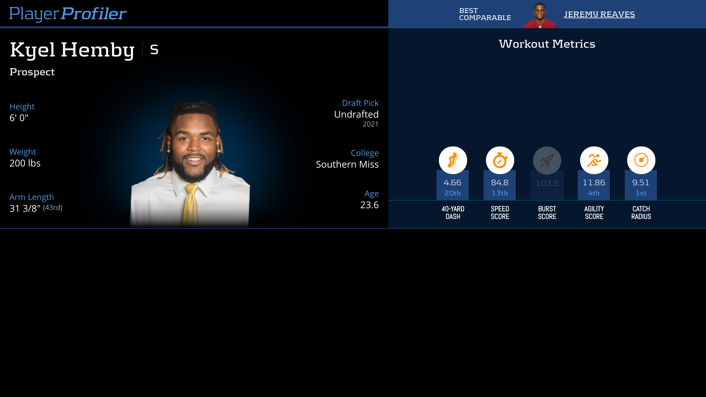 Download all Kyel Hemby advanced stats and metrics with Data Analysis.