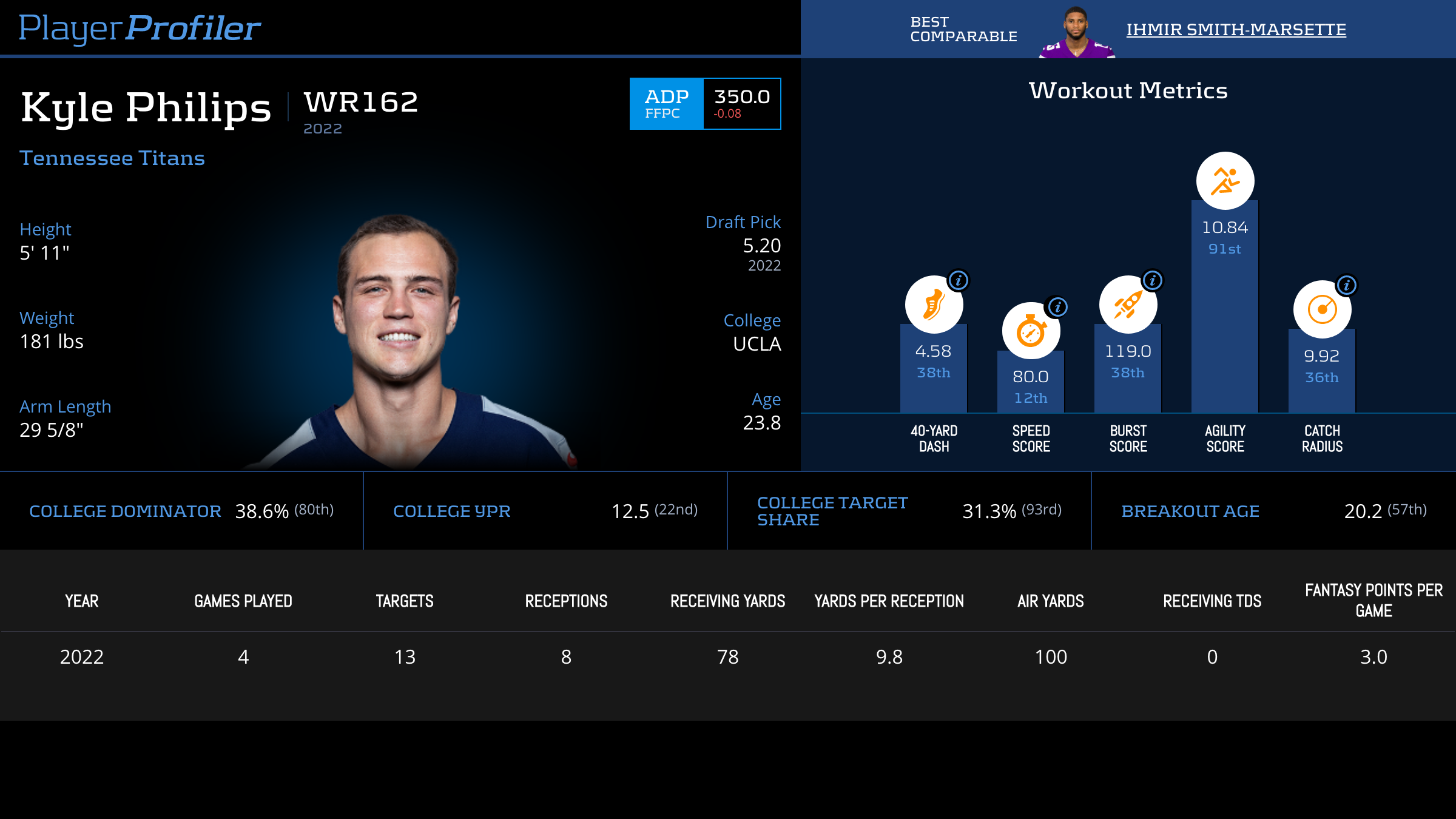Box score statistics such as targets, yards, touchdowns, and fantasy points per target are updated the next day. Advanced stats and metrics are updated later in the week during the NFL season.