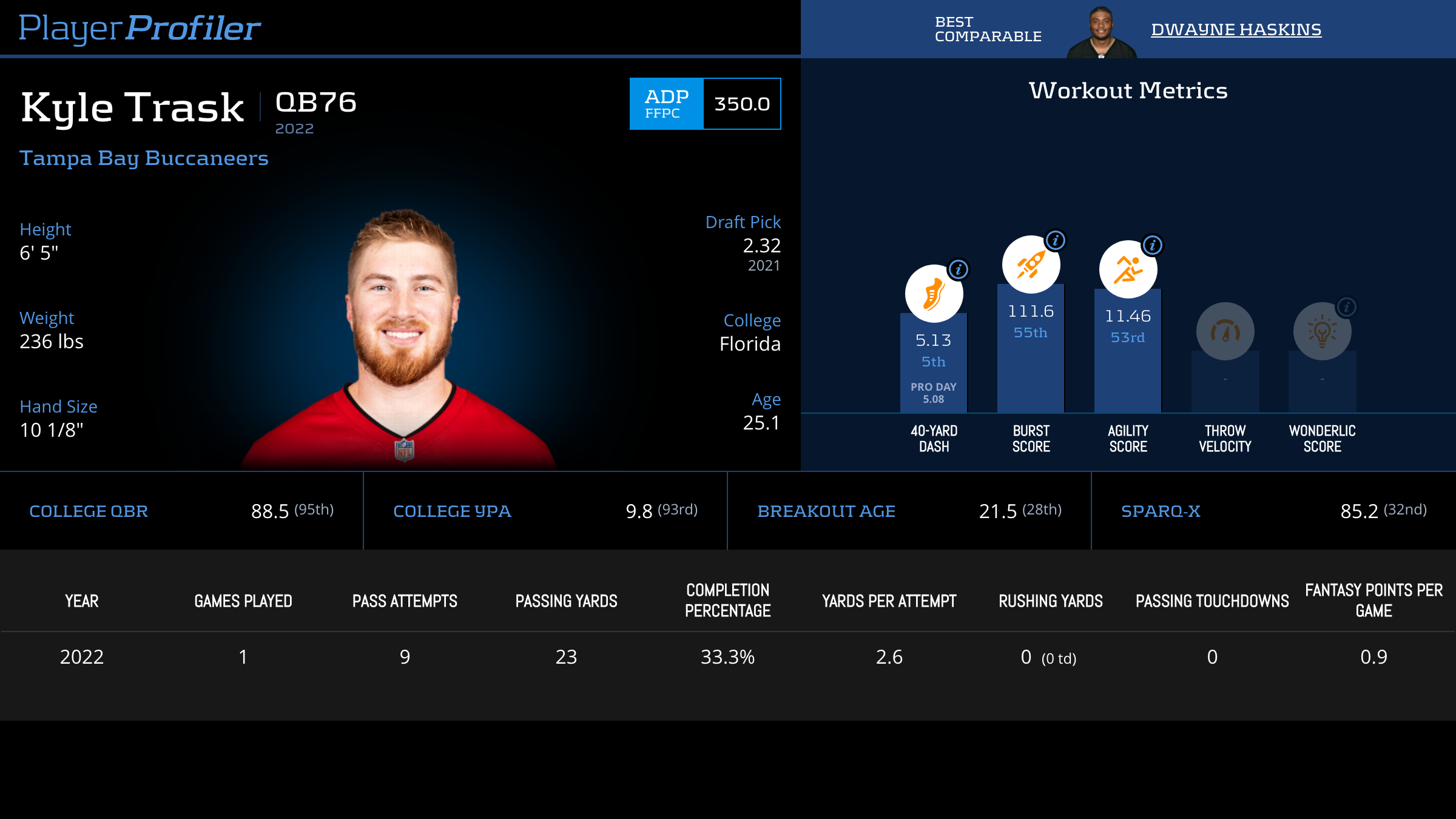 | Year Year | Games Games | Pass Attempts Pass Atts | Passing Yards Pass Yds | Yards Per Attempt YPA | Completion Percentage Comp % | Passing Touchdowns Pass TDs | Rushing Yards Rush Yds | Age Age | School School |