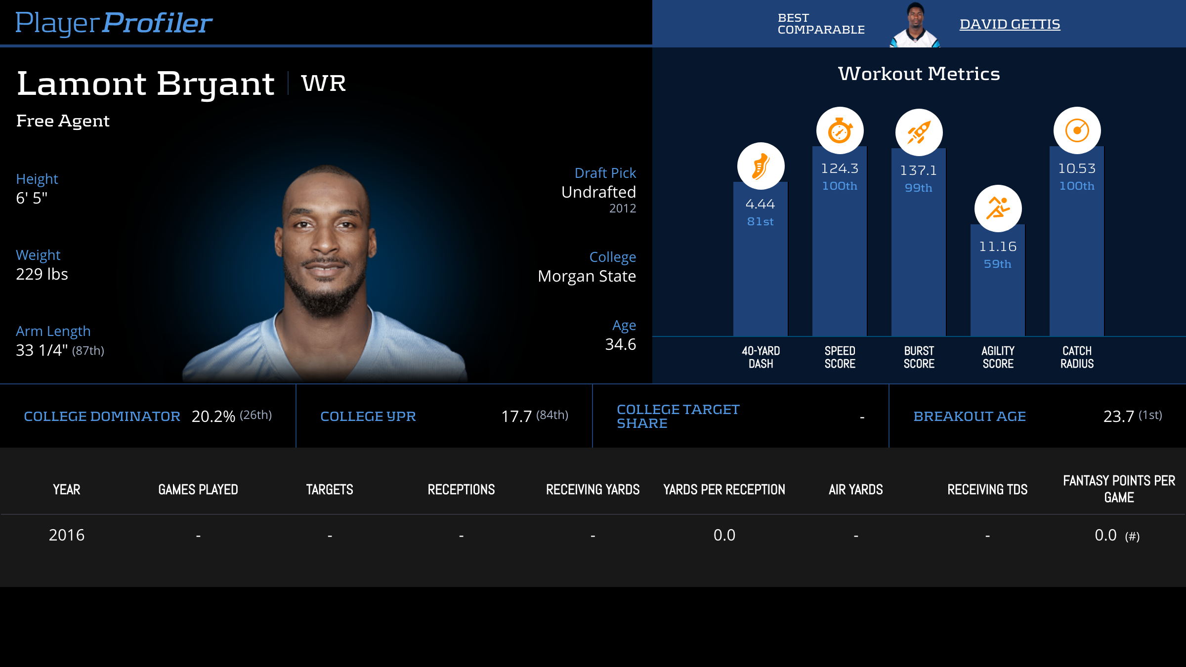 Year Games Tgts Rec Rec Yds YPR Air Yds Rec TD Fantasy Pts/Game