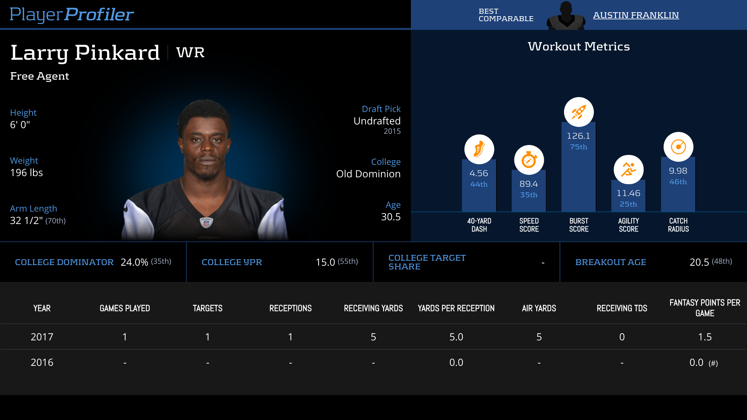 Box score statistics such as targets, yards, touchdowns, and fantasy points per target are updated the next day. Advanced stats and metrics are updated later in the week during the NFL season.
