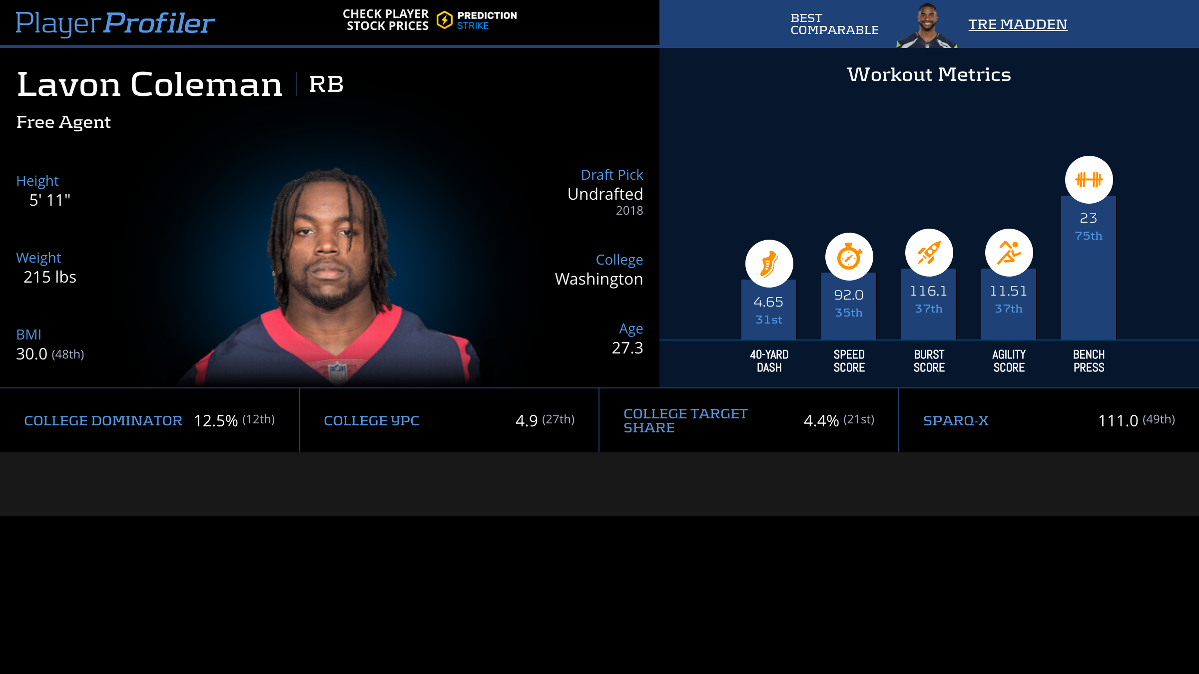 | Year Year | Games Games | Rush Attempts Rush Atts | Rushing Yards Rush Yrds | Total Touchdowns TDs | Receptions Rec | Receiving Yards Rec Yrds | Target Share Tgt Share | Age Age | School School |
