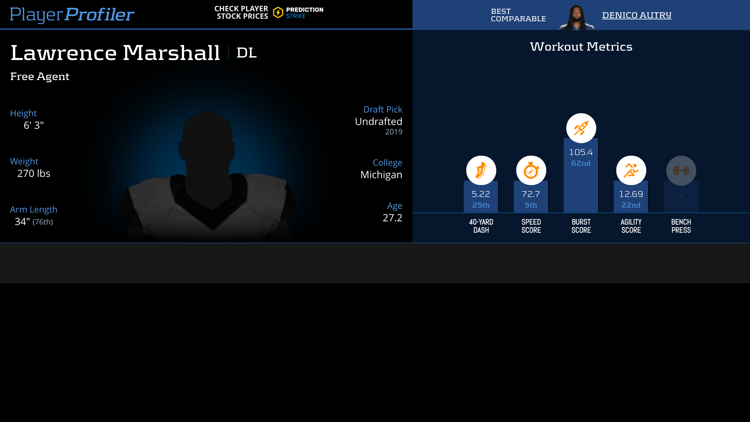 Download all Lawrence Marshall advanced stats and metrics with Data Analysis.