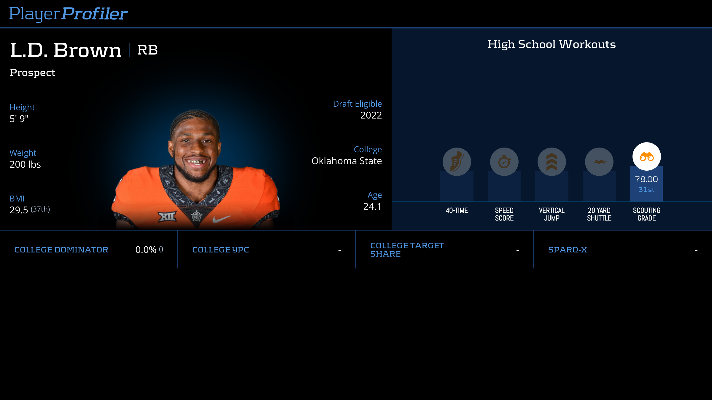 | Year Year | Games Games | Rush Attempts Rush Atts | Rushing Yards Rush Yrds | Total Touchdowns TDs | Receptions Rec | Receiving Yards Rec Yrds | Target Share Tgt Share | Age Age | School School |
