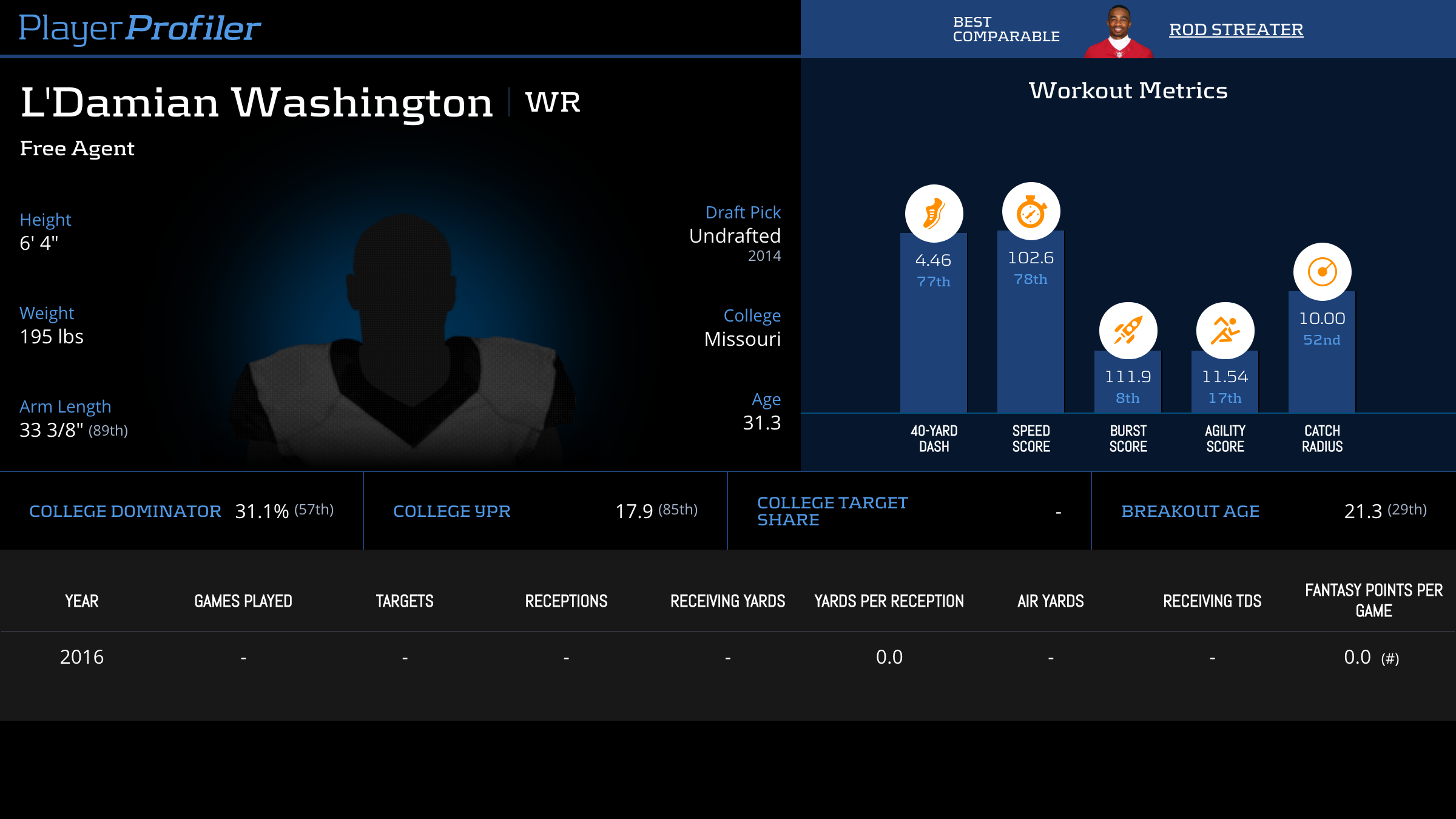 Year Games Tgts Rec Rec Yds YPR Air Yds Rec TD Fantasy Pts/Game