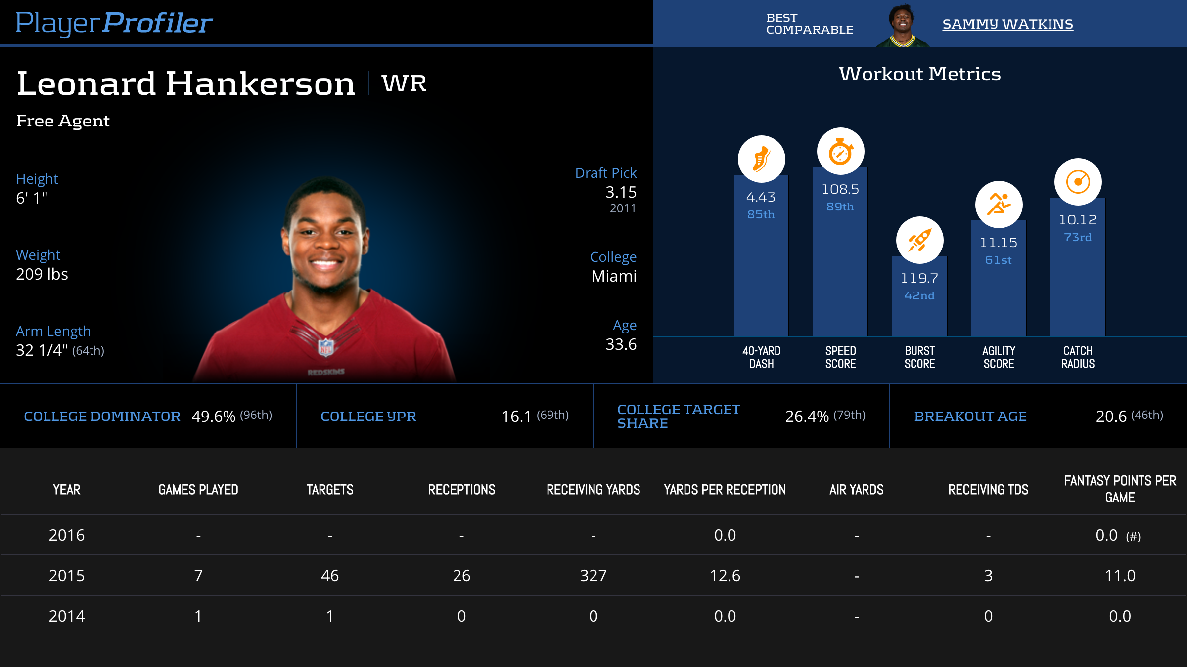Box score statistics such as targets, yards, touchdowns, and fantasy points per target are updated the next day. Advanced stats and metrics are updated later in the week during the NFL season.