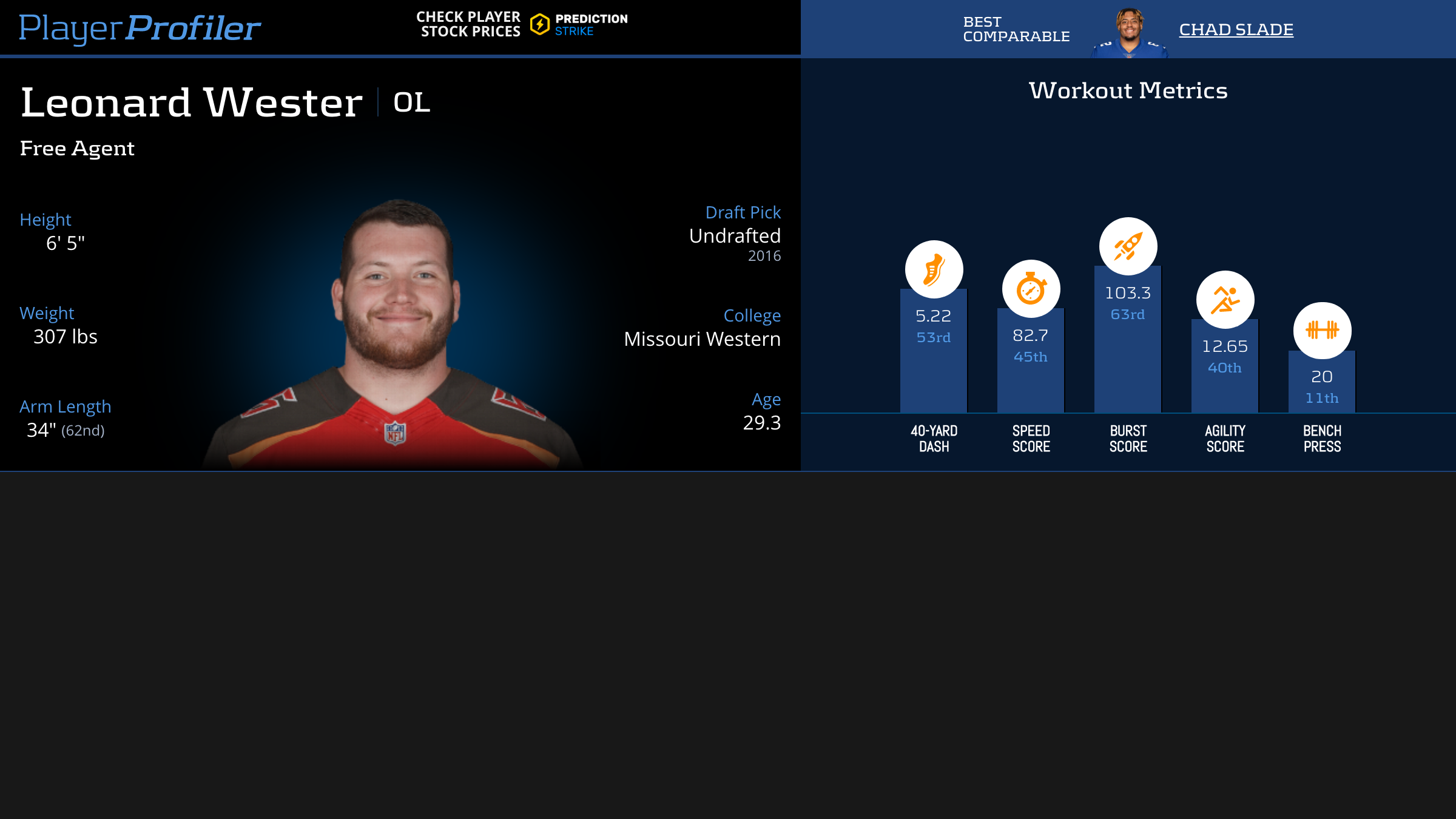 Download all Leonard Wester advanced stats and metrics with Data Analysis.