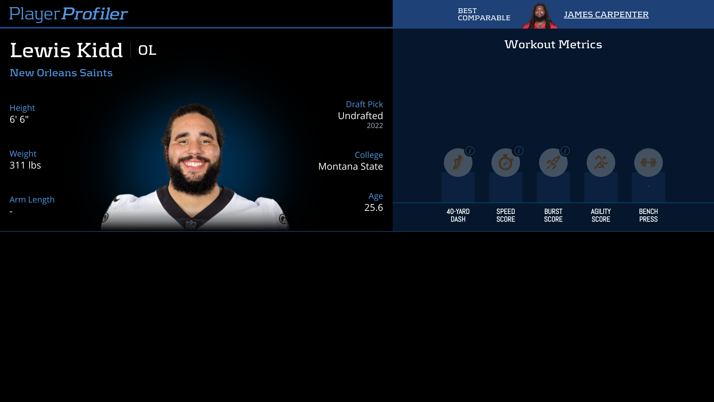 Download all Lewis Kidd advanced stats and metrics with Data Analysis.