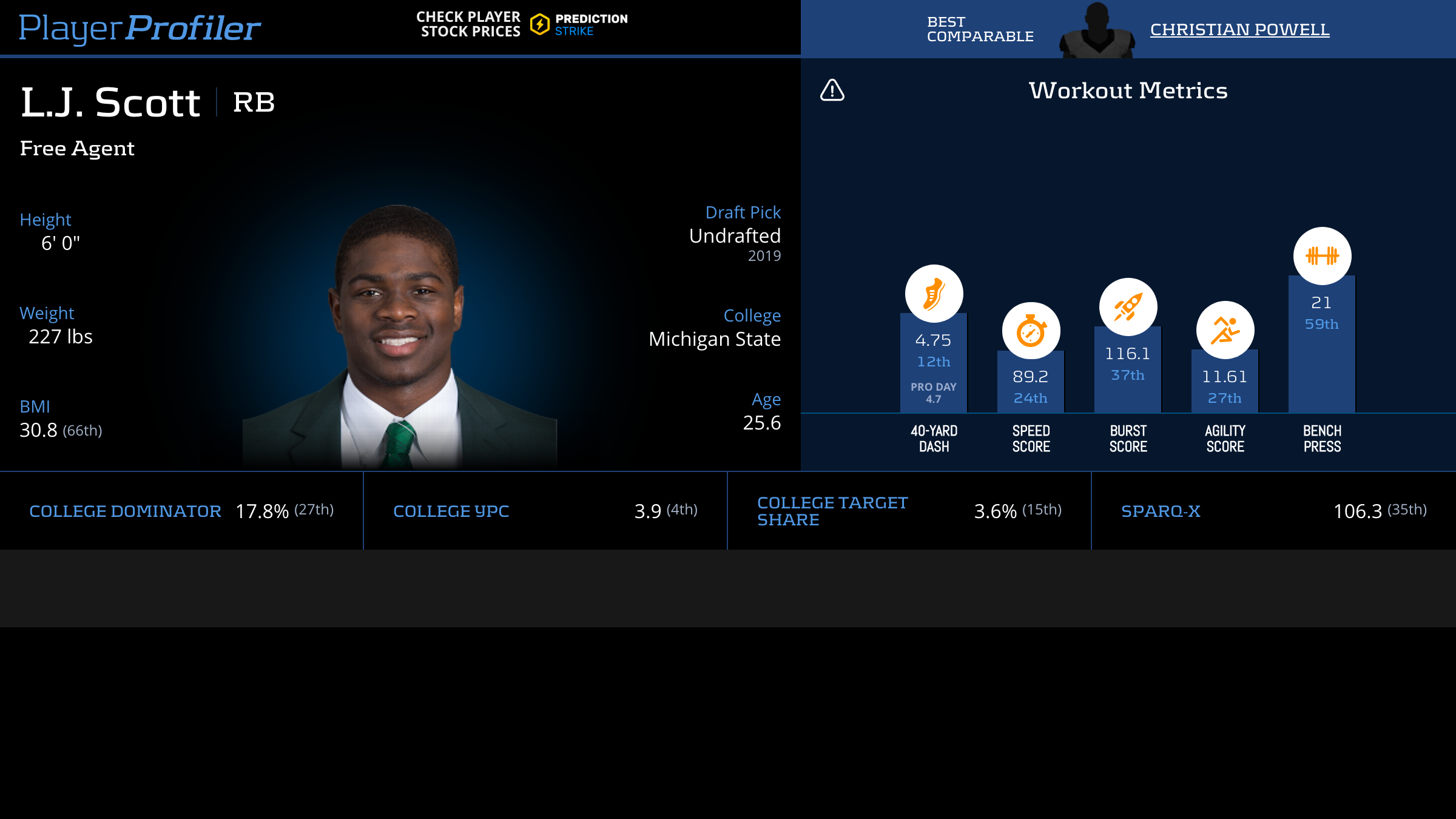 | Year Year | Games Games | Rush Attempts Rush Atts | Rushing Yards Rush Yrds | Total Touchdowns TDs | Receptions Rec | Receiving Yards Rec Yrds | Target Share Tgt Share | Age Age | School School |