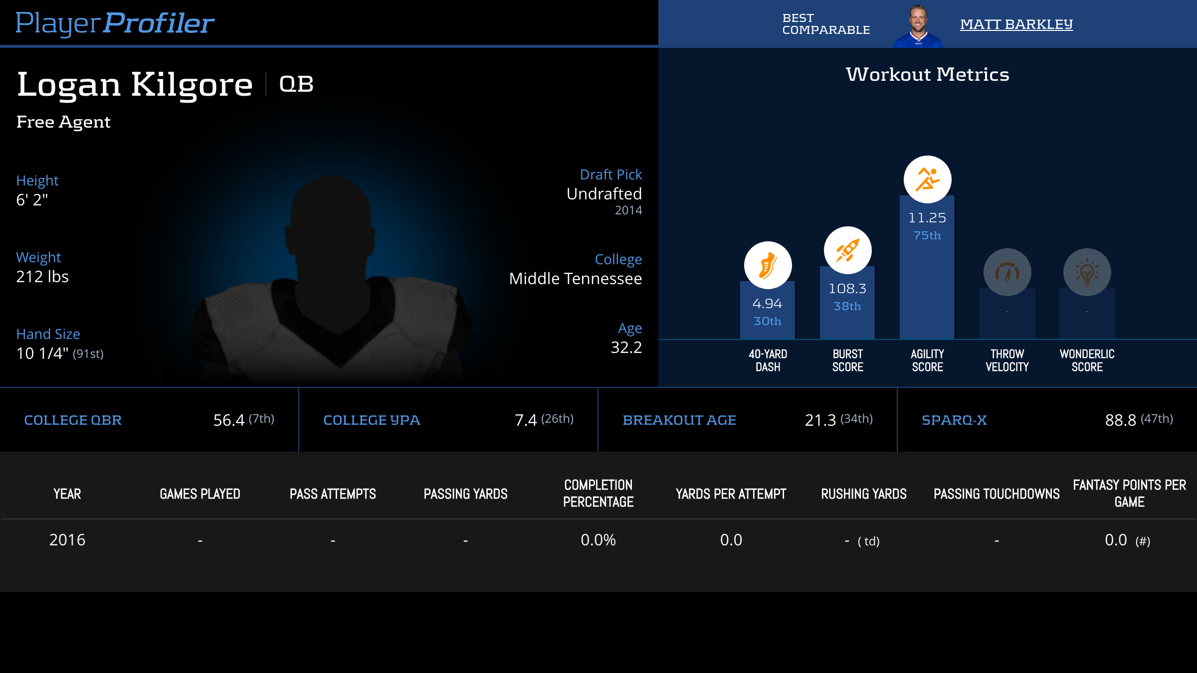 | Year Year | Games Games | Pass Attempts Pass Atts | Passing Yards Pass Yds | Yards Per Attempt YPA | Completion Percentage Comp % | Passing Touchdowns Pass TDs | Rushing Yards Rush Yds | Age Age | School School |