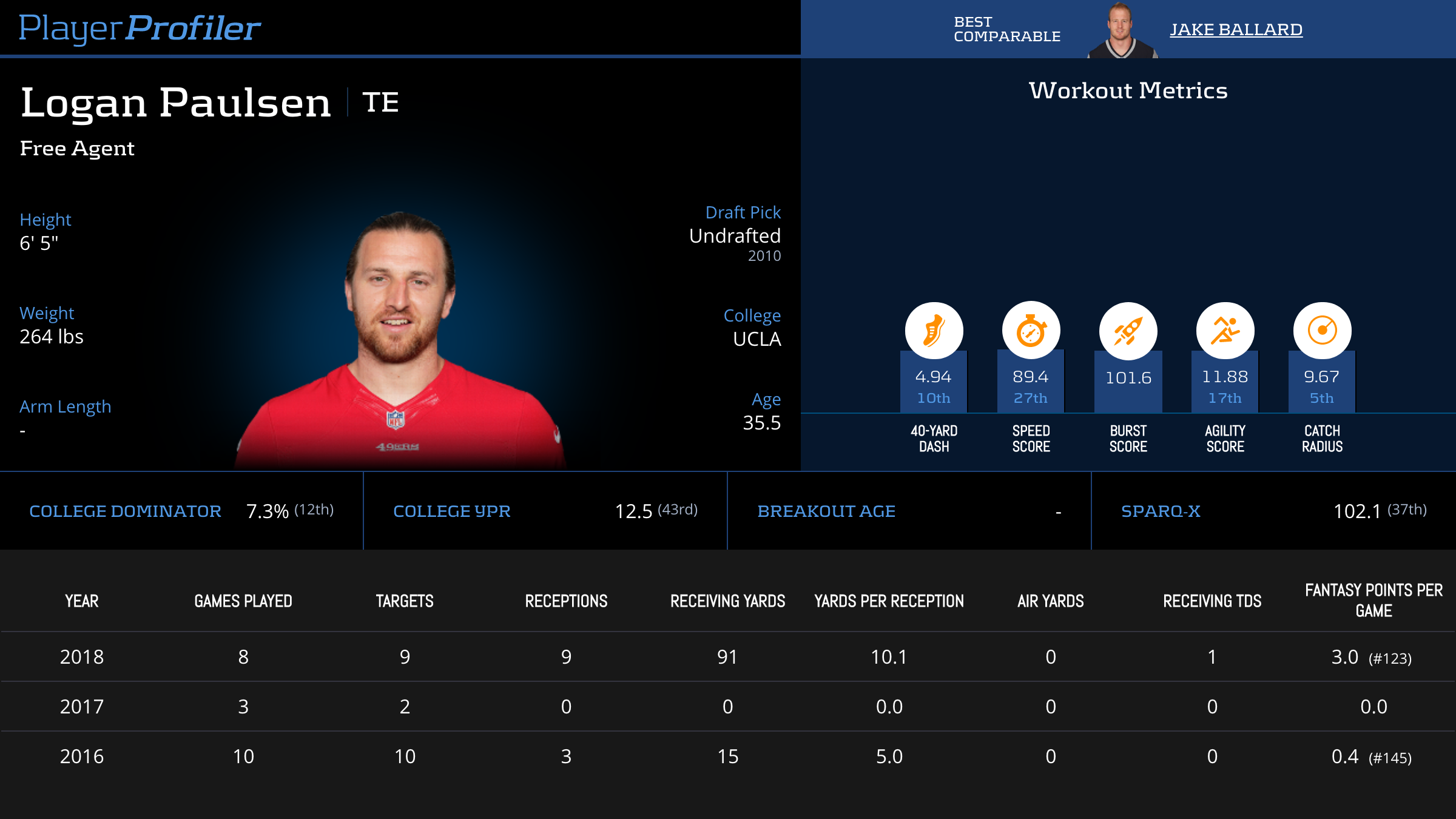 Box score statistics such as targets, yards, touchdowns, and fantasy points per target are updated the next day. Advanced stats and metrics are updated later in the week during the NFL season.