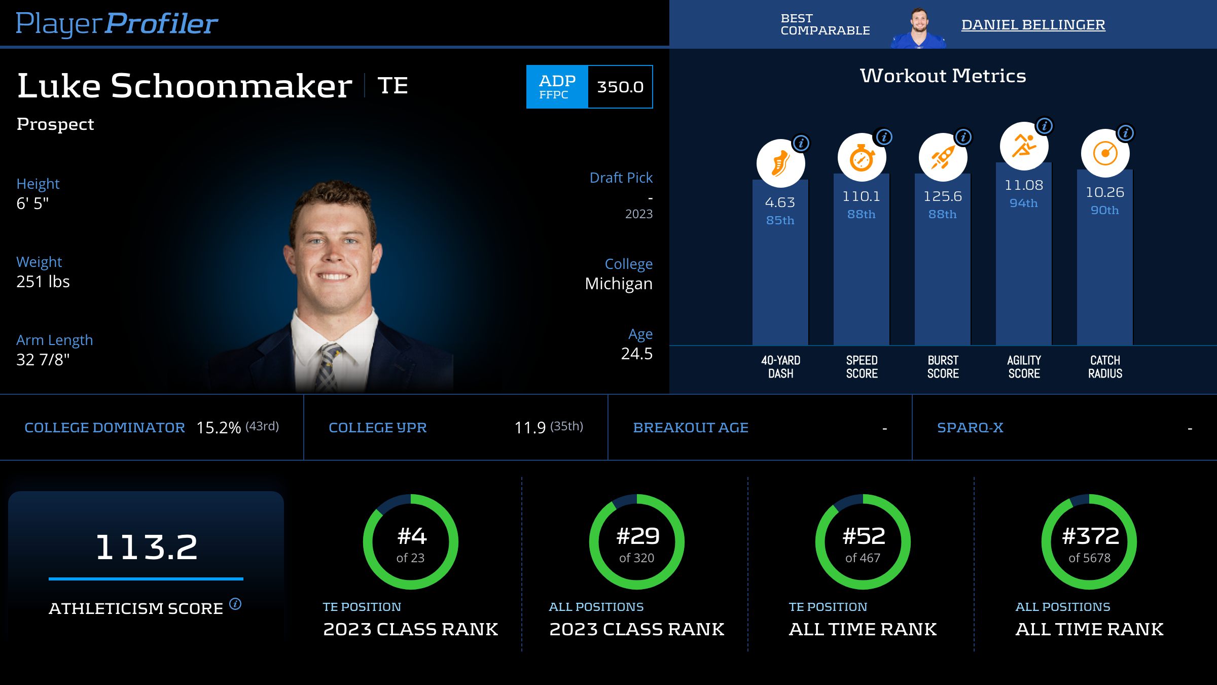 | 14 | DET | 20.7% | 8 (15.4% rate) | 2 | 1 | 12 (17 air) | 2.2 (#41) |