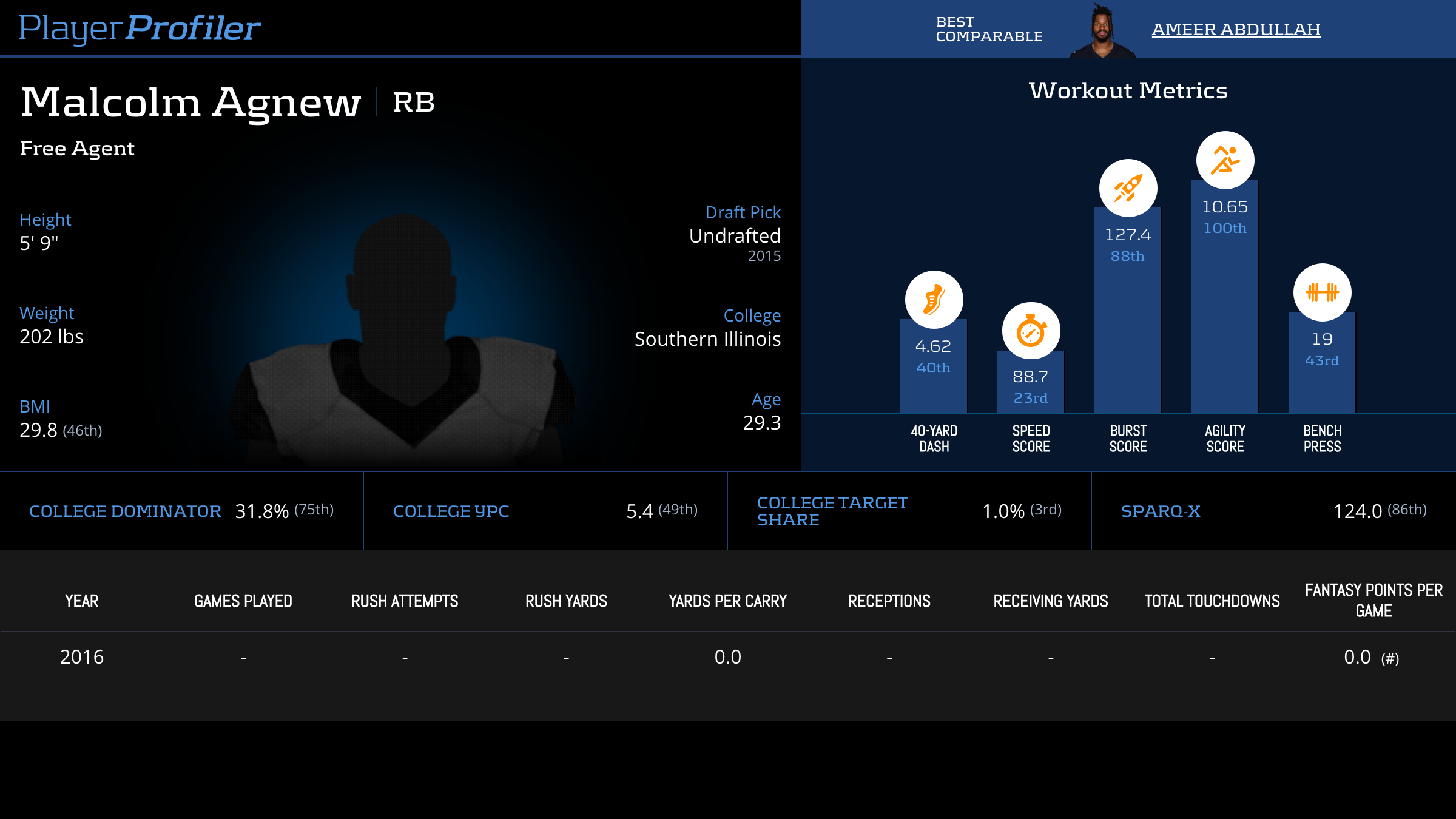 | Year Year | Games Games | Rush Attempts Rush Atts | Rushing Yards Rush Yrds | Total Touchdowns TDs | Receptions Rec | Receiving Yards Rec Yrds | Target Share Tgt Share | Age Age | School School |