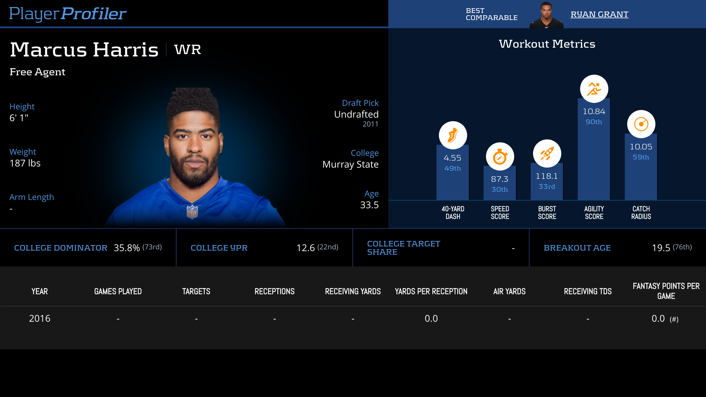 Year Games Tgts Rec Rec Yds YPR Air Yds Rec TD Fantasy Pts/Game
