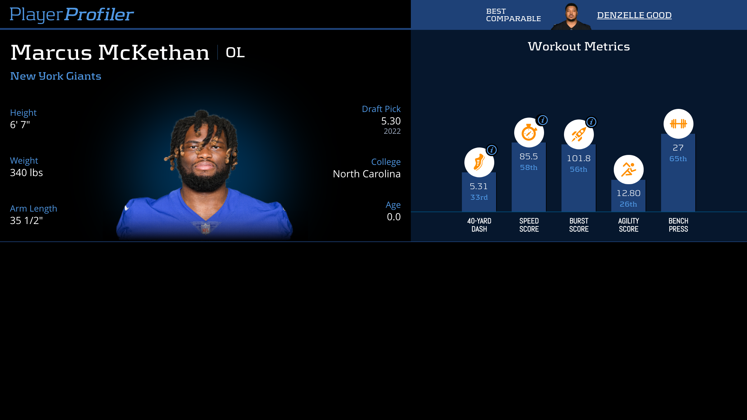 Download all Marcus McKethan advanced stats and metrics with Data Analysis.