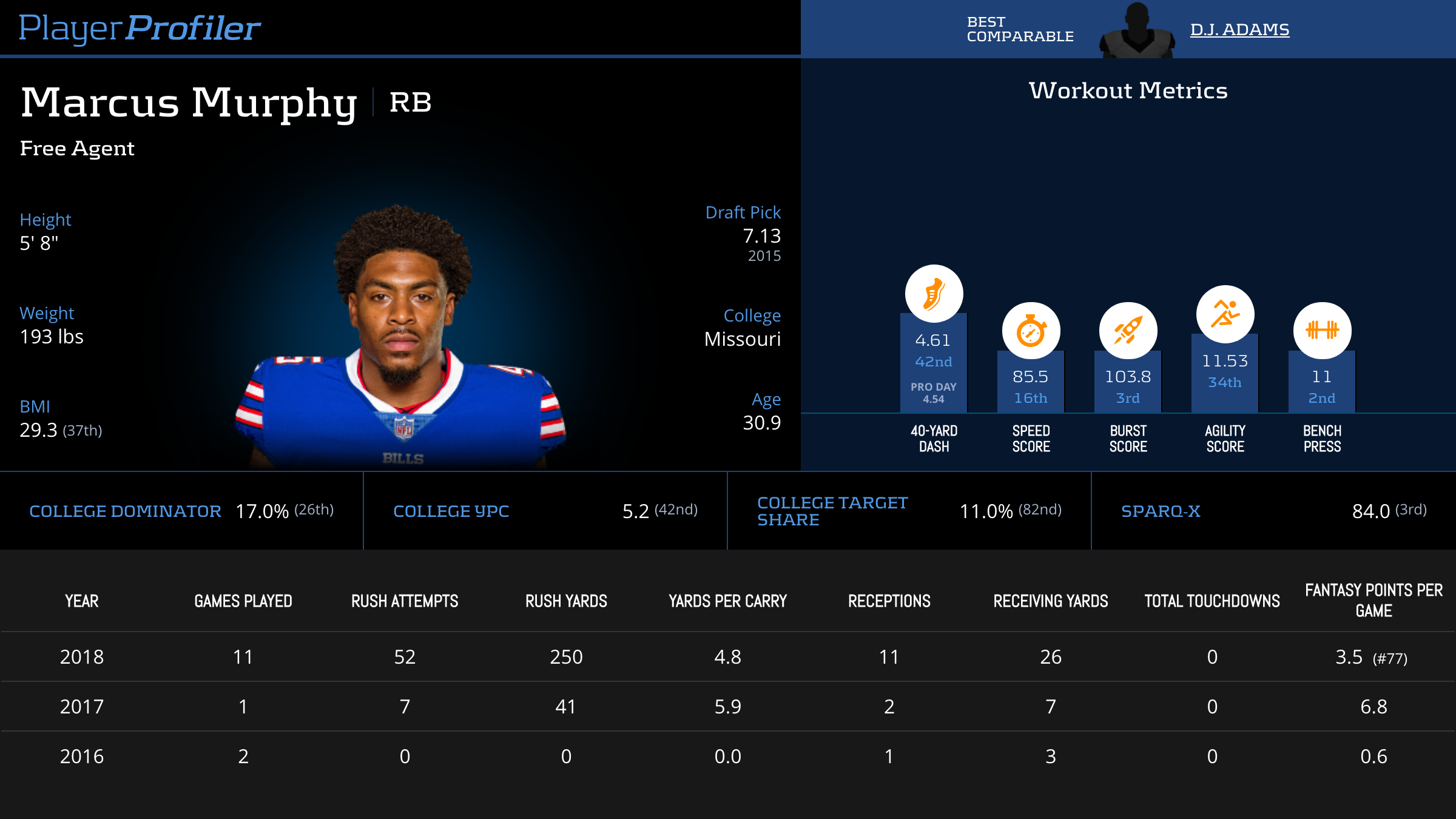 | 10 | NYJ | 30.6% | 14 (4 rz) | 4 | -- | -- | 69 | -- | 6.9 (##38) |