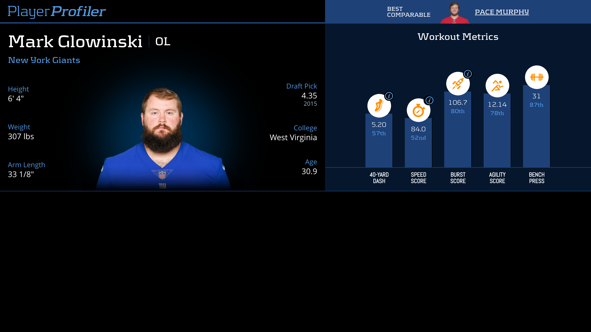 Download all Mark Glowinski advanced stats and metrics with Data Analysis.