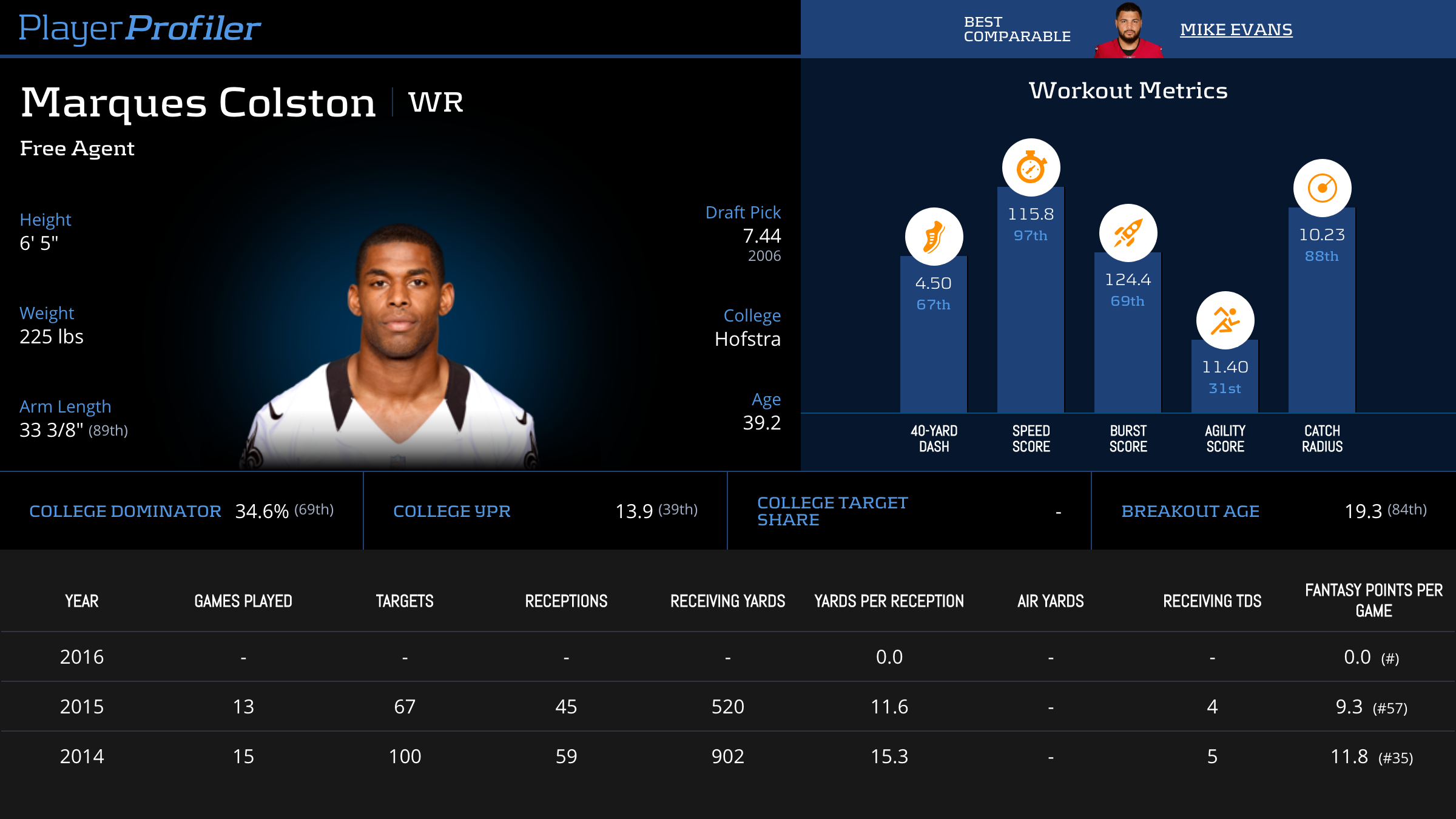 Marques Colston Advanced Stats & Metrics