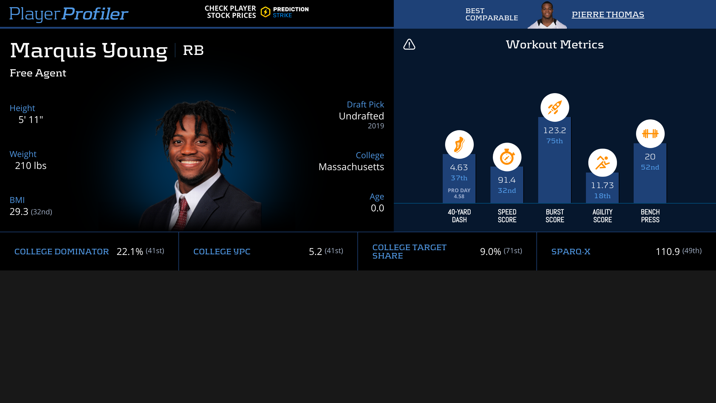 | Year Year | Games Games | Rush Attempts Rush Atts | Rushing Yards Rush Yrds | Total Touchdowns TDs | Receptions Rec | Receiving Yards Rec Yrds | Target Share Tgt Share | Age Age | School School |