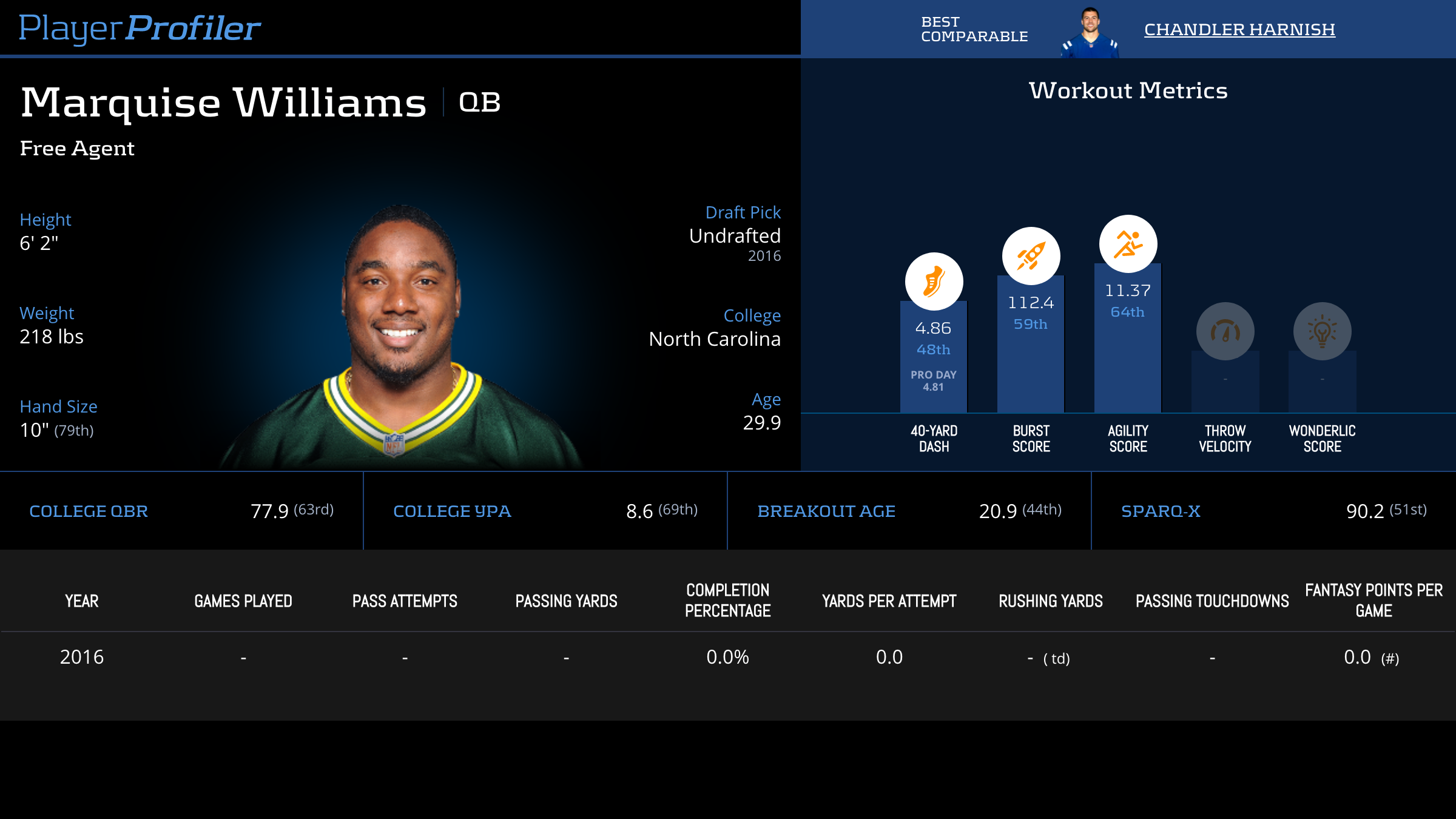 | Year Year | Games Games | Pass Attempts Pass Atts | Passing Yards Pass Yds | Yards Per Attempt YPA | Completion Percentage Comp % | Passing Touchdowns Pass TDs | Rushing Yards Rush Yds | Age Age | School School |