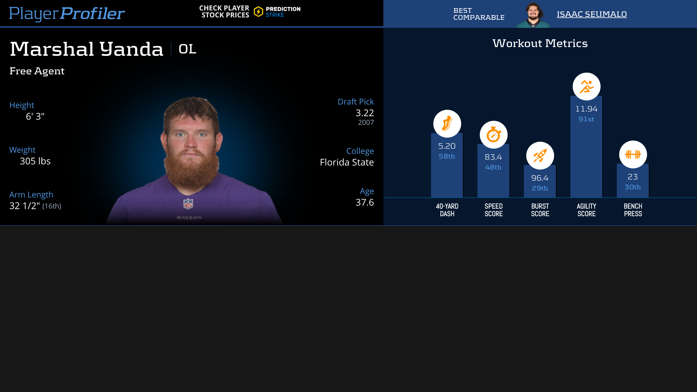 Download all Marshal Yanda advanced stats and metrics with Data Analysis.