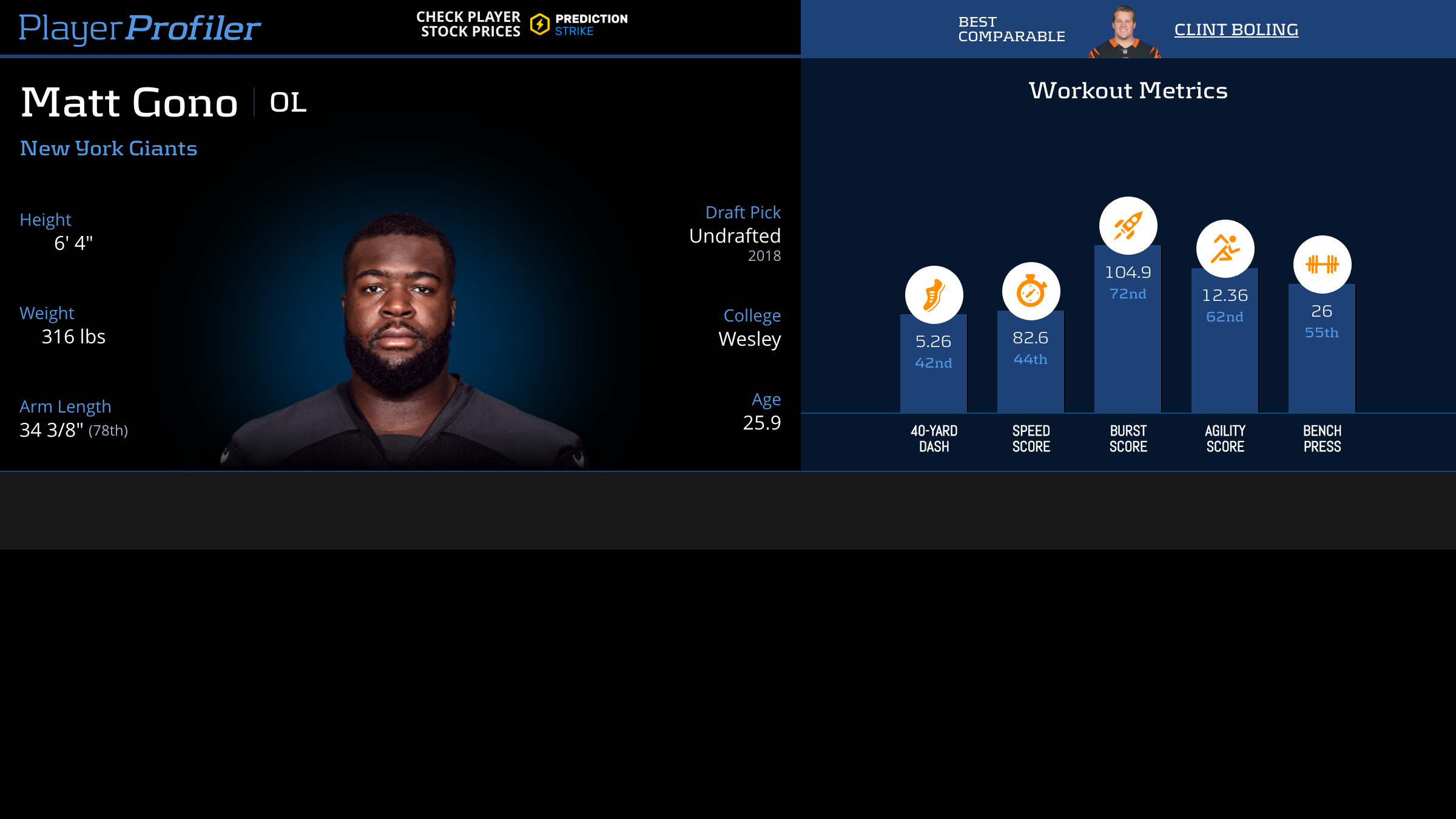 Download all Matt Gono advanced stats and metrics with Data Analysis.