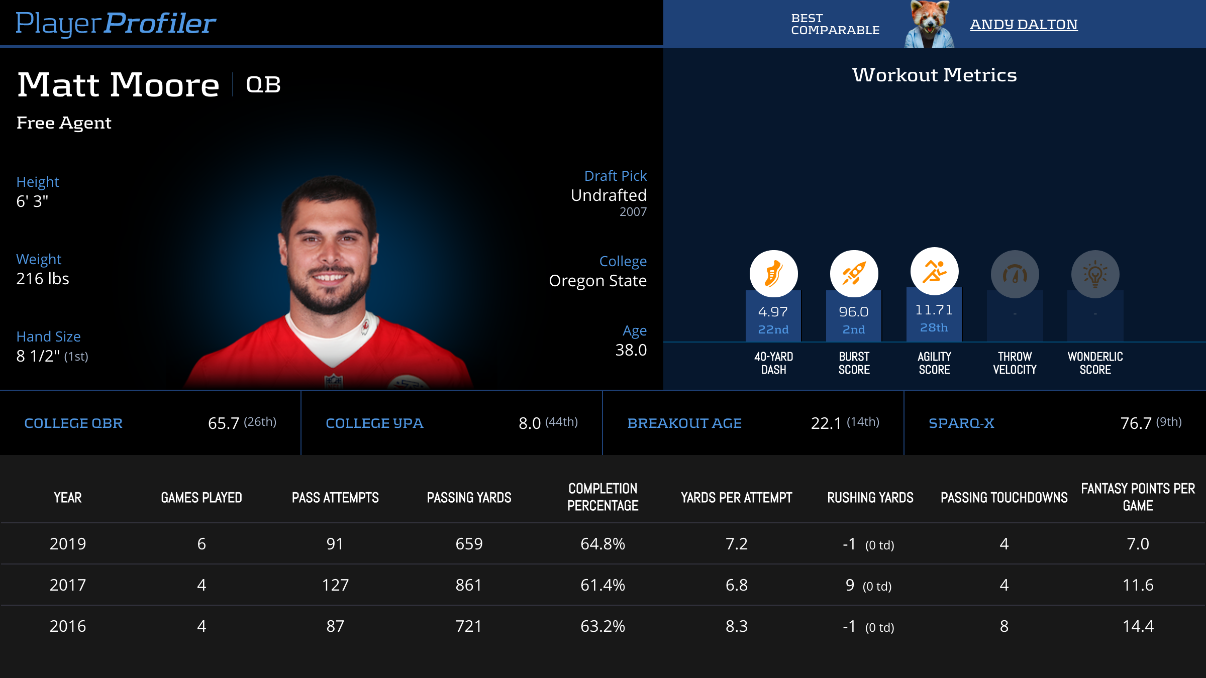 | Year Year | Games Games | Pass Attempts Pass Atts | Passing Yards Pass Yds | Yards Per Attempt YPA | Completion Percentage Comp % | Passing Touchdowns Pass TDs | Rushing Yards Rush Yds | Age Age | School School |