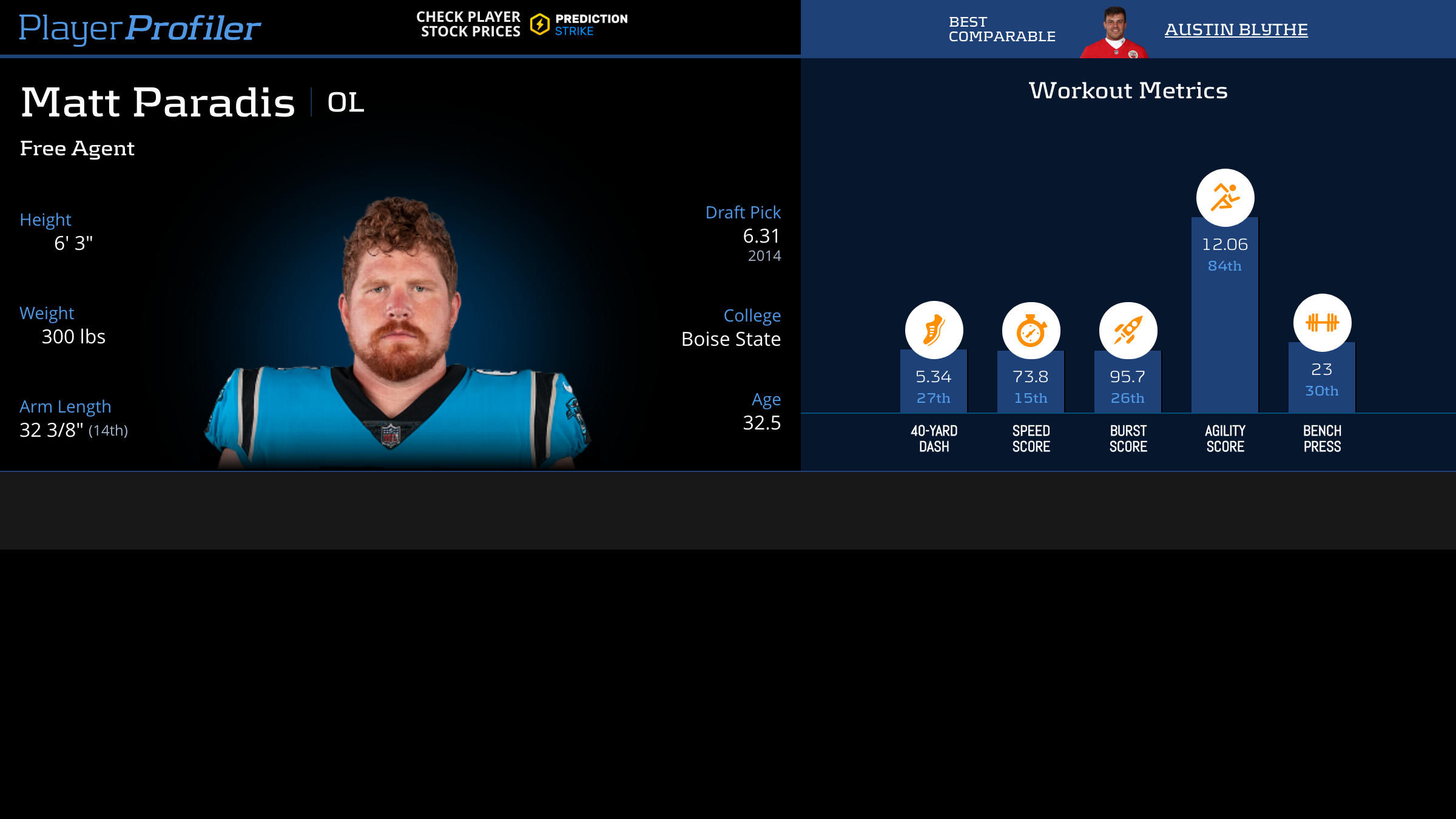 Download all Matt Paradis advanced stats and metrics with Data Analysis.