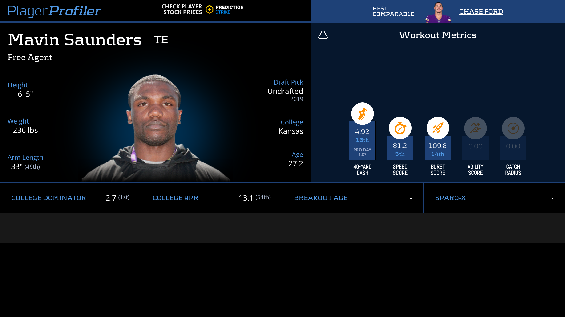 | Year Year | Games Games | Receptions Recs | Receiving Yards Rec Yds | Target Share Tgt Share | Catch Rate Catch Rate | Receiving Touchdowns Rec TDs | Special Teams Yards Special Teams | Age Age | School School |