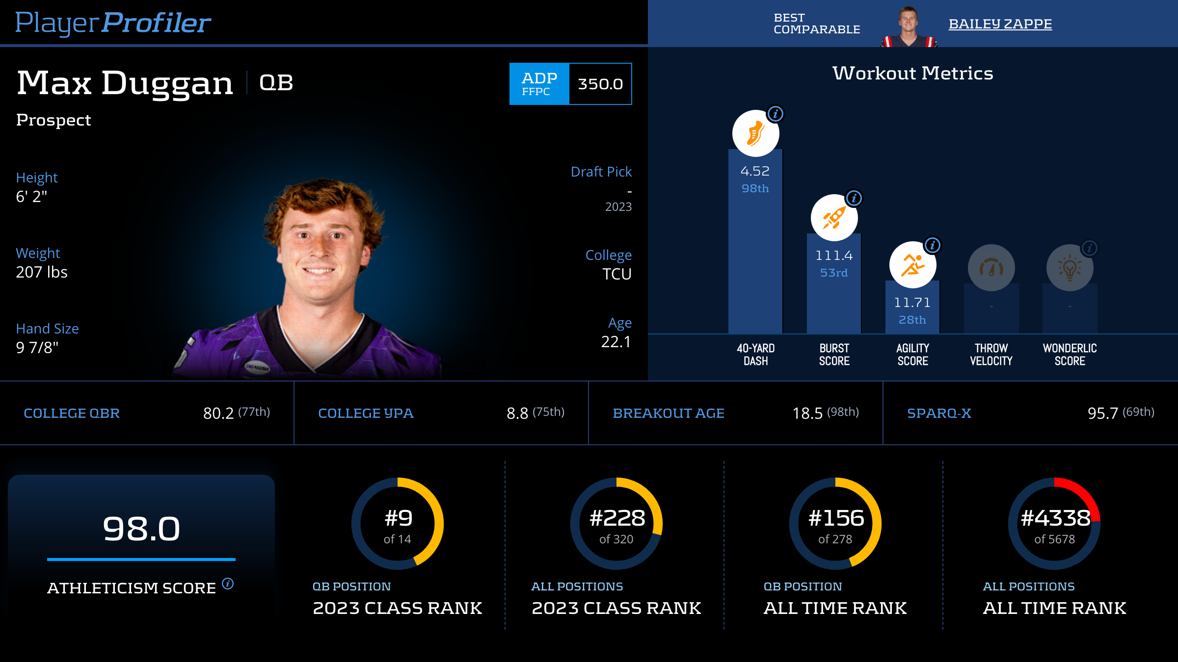 Player Popularity Index (PPI) ranks PlayerProfiler page views over the last 30 days. For example, the No. 1 PPI player page is the most frequently visited page in recent weeks.