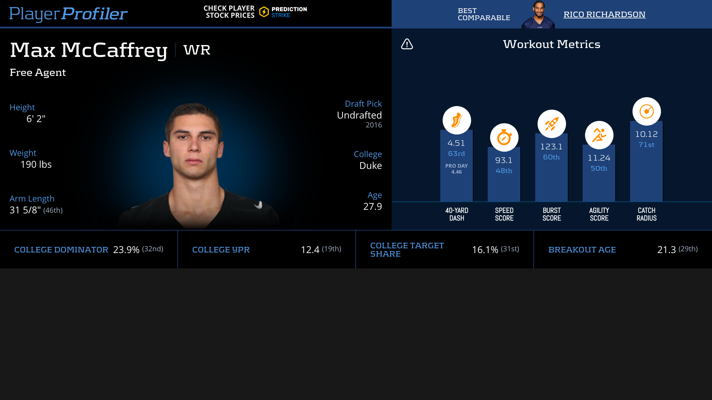 | Year Year | Games Games | Receptions Recs | Receiving Yards Rec Yds | Target Share Tgt Share | Catch Rate Catch Rate | Receiving Touchdowns Rec TDs | Special Teams Yards Special Teams | Age Age | School School |