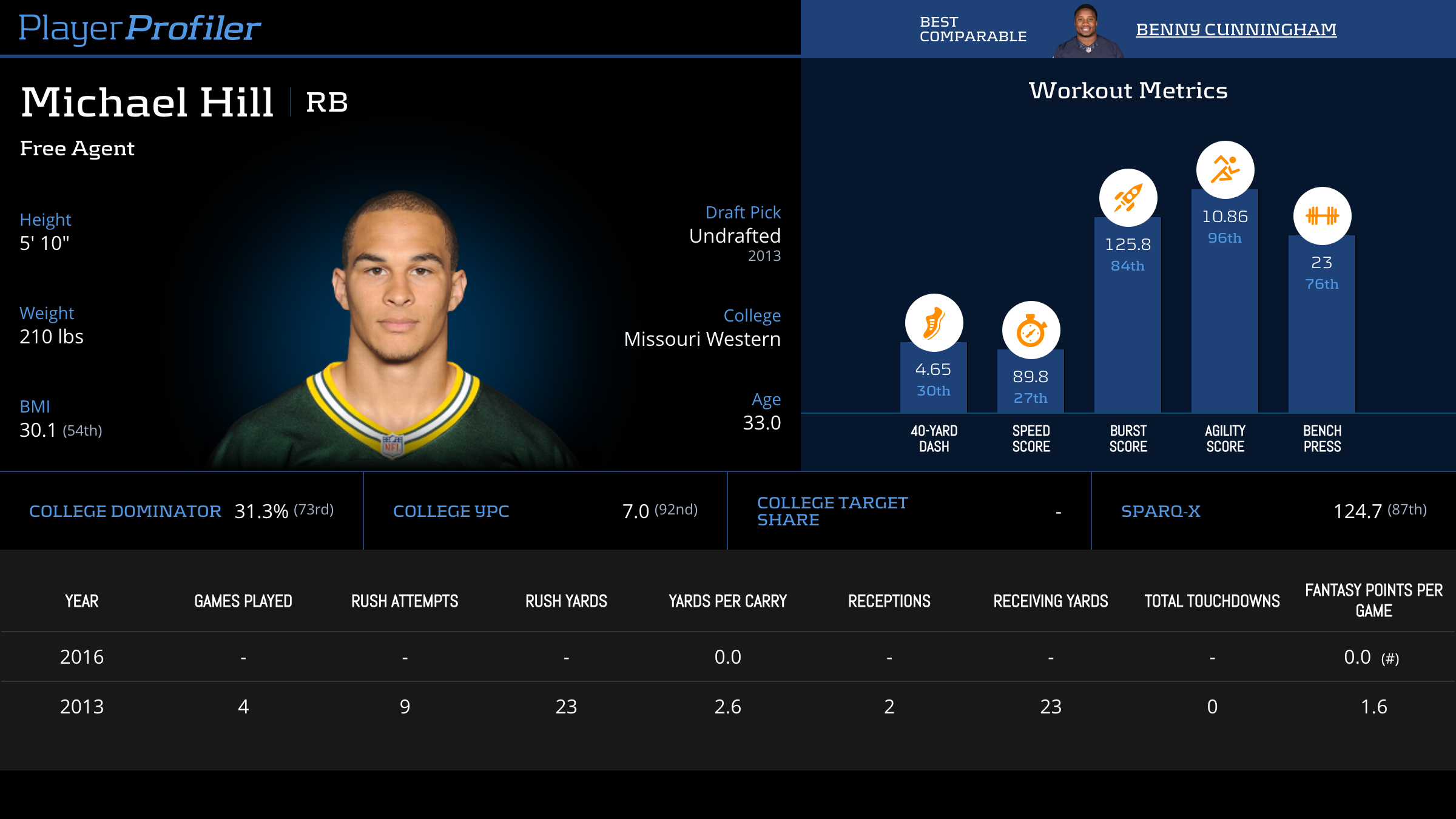 Box score statistics such as targets, yards, touchdowns, and fantasy points per target are updated the next day. Advanced stats and metrics are updated later in the week during the NFL season.