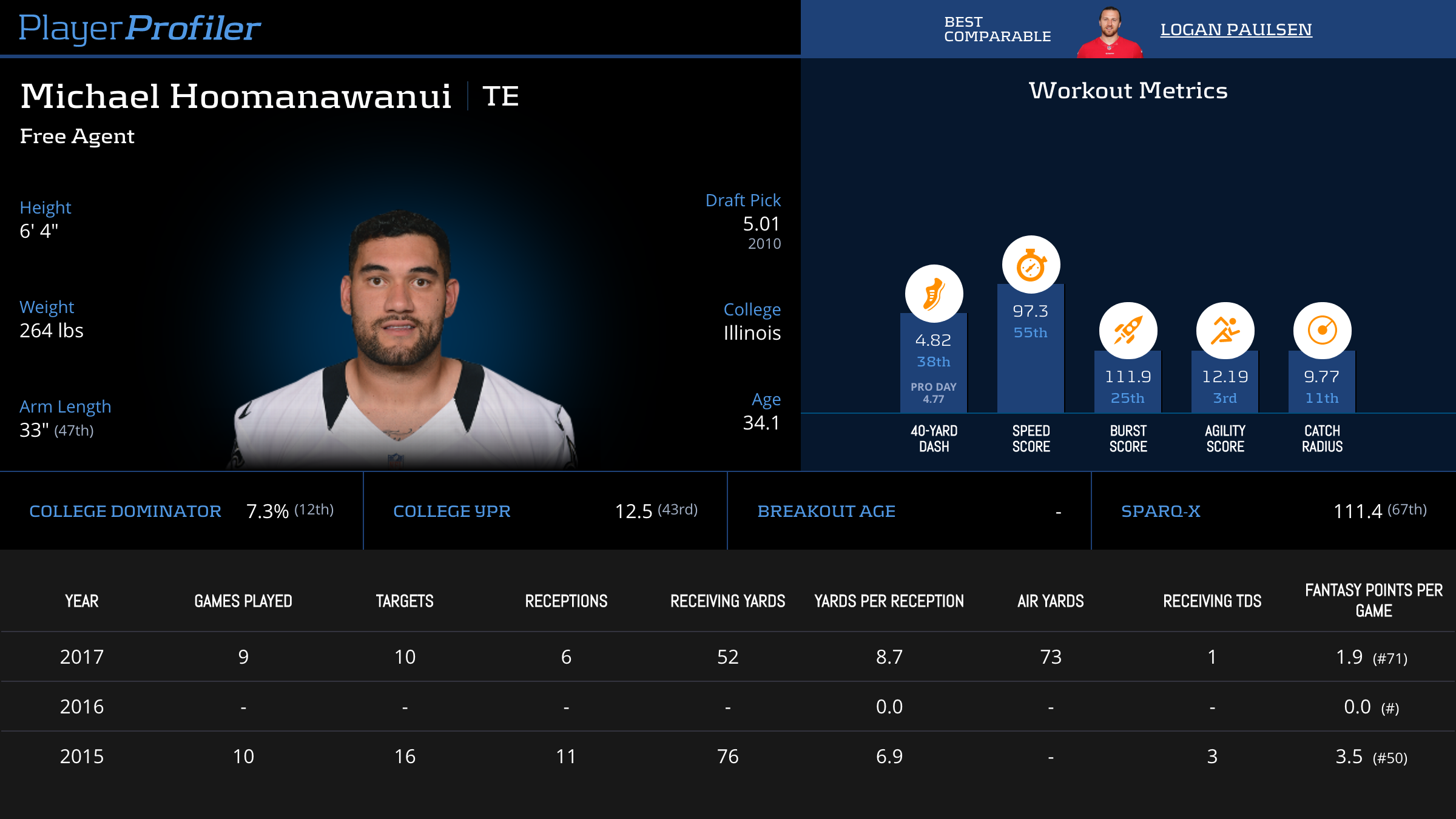| Year Year | Games Games | Receptions Recs | Receiving Yards Rec Yds | Target Share Tgt Share | Catch Rate Catch Rate | Receiving Touchdowns Rec TDs | Special Teams Yards Special Teams | Age Age | School School |