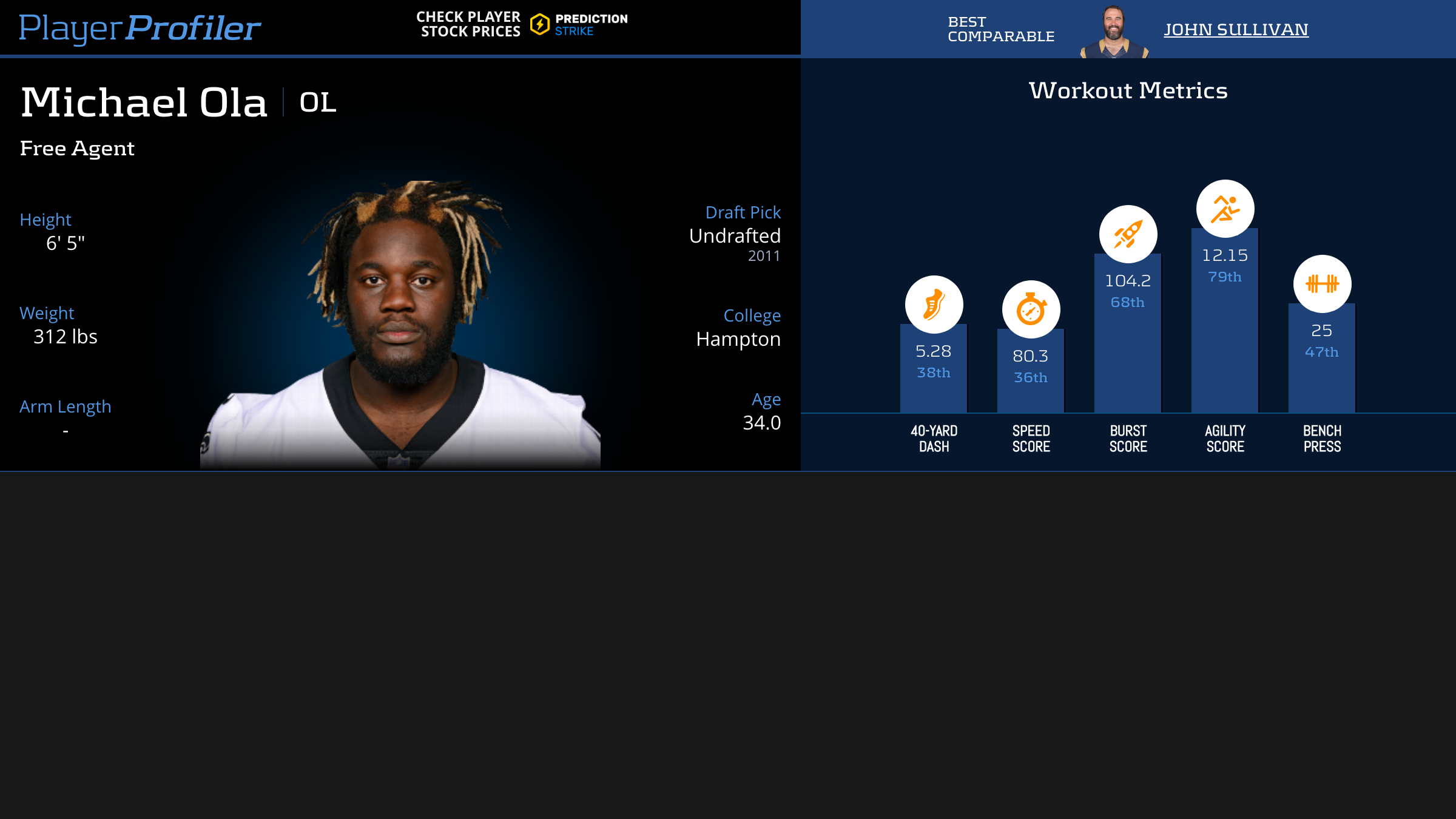 Download all Michael Ola advanced stats and metrics with Data Analysis.