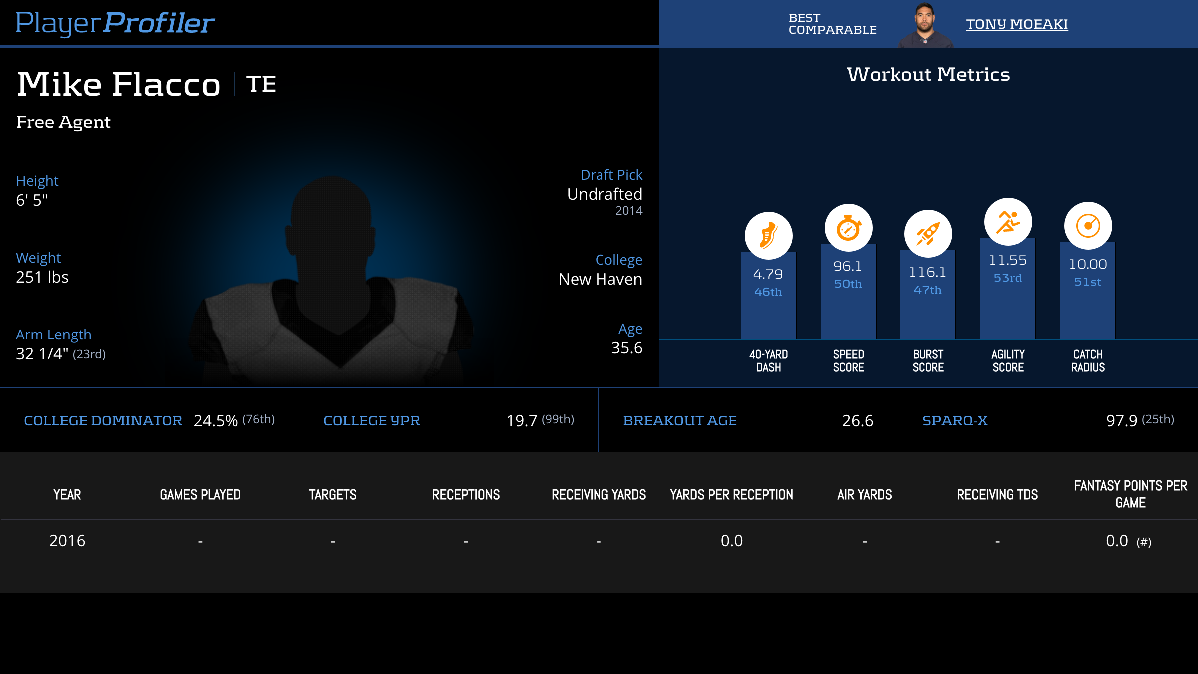 | Year Year | Games Games | Receptions Recs | Receiving Yards Rec Yds | Target Share Tgt Share | Catch Rate Catch Rate | Receiving Touchdowns Rec TDs | Special Teams Yards Special Teams | Age Age | School School |