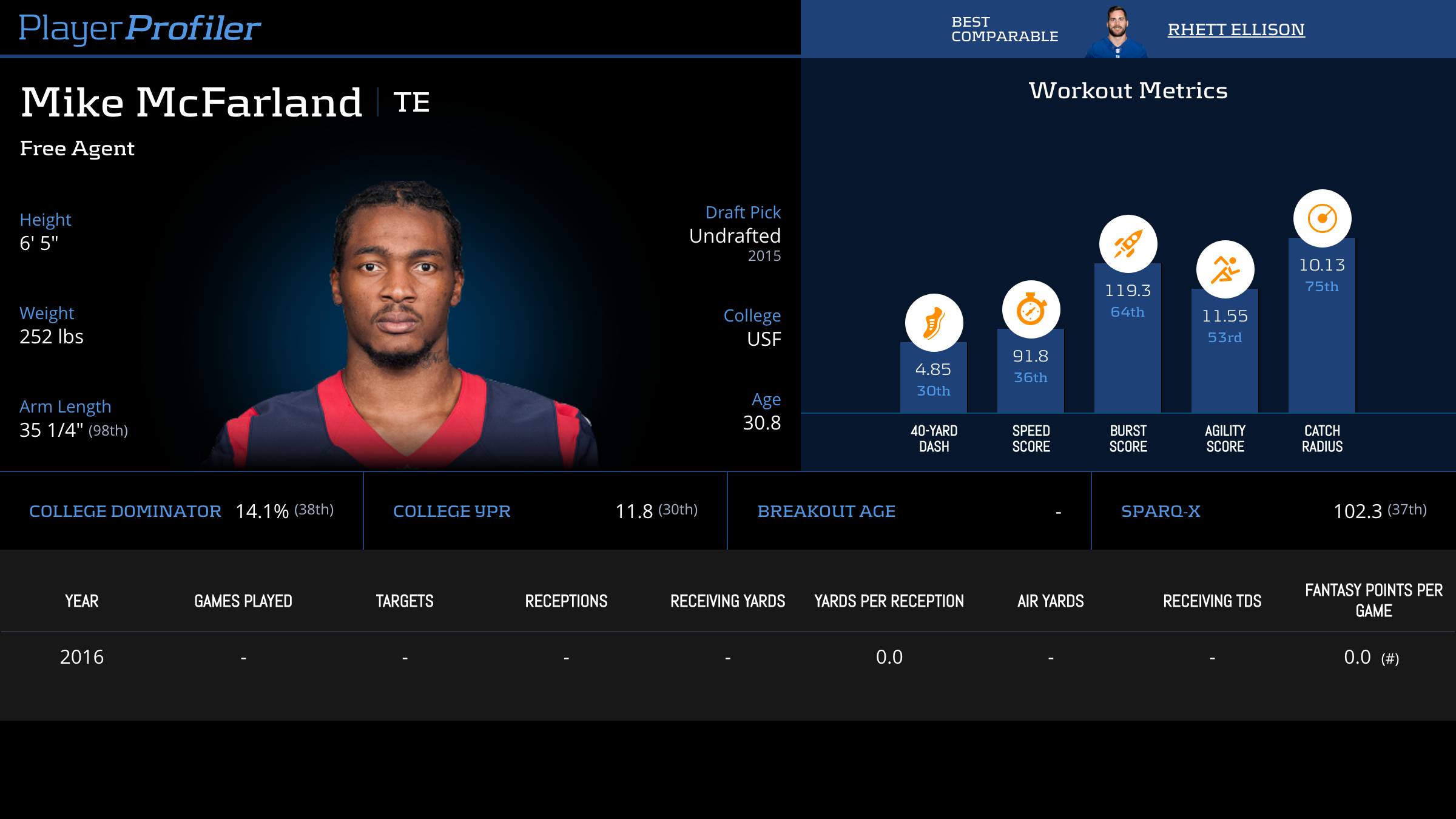 | Year Year | Games Games | Receptions Recs | Receiving Yards Rec Yds | Target Share Tgt Share | Catch Rate Catch Rate | Receiving Touchdowns Rec TDs | Special Teams Yards Special Teams | Age Age | School School |