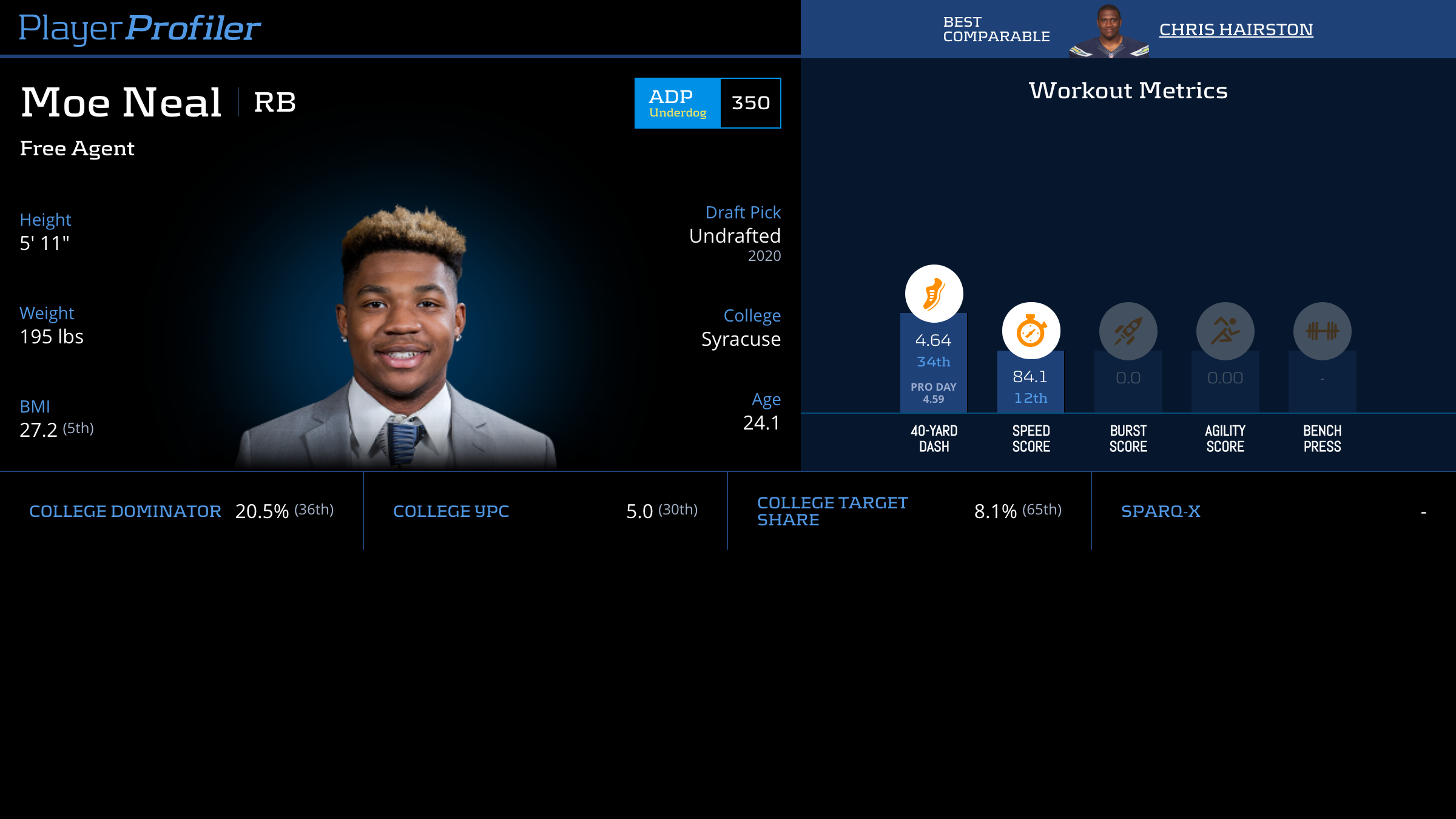 | Year Year | Games Games | Rush Attempts Rush Atts | Rushing Yards Rush Yrds | Total Touchdowns TDs | Receptions Rec | Receiving Yards Rec Yrds | Target Share Tgt Share | Age Age | School School |