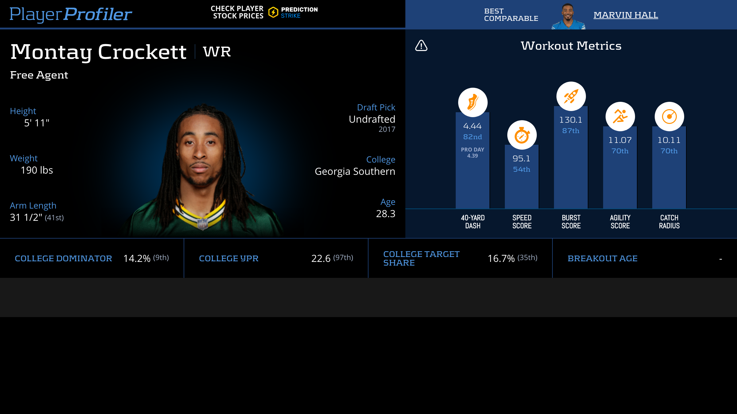 | Year Year | Games Games | Receptions Recs | Receiving Yards Rec Yds | Target Share Tgt Share | Catch Rate Catch Rate | Receiving Touchdowns Rec TDs | Special Teams Yards Special Teams | Age Age | School School |